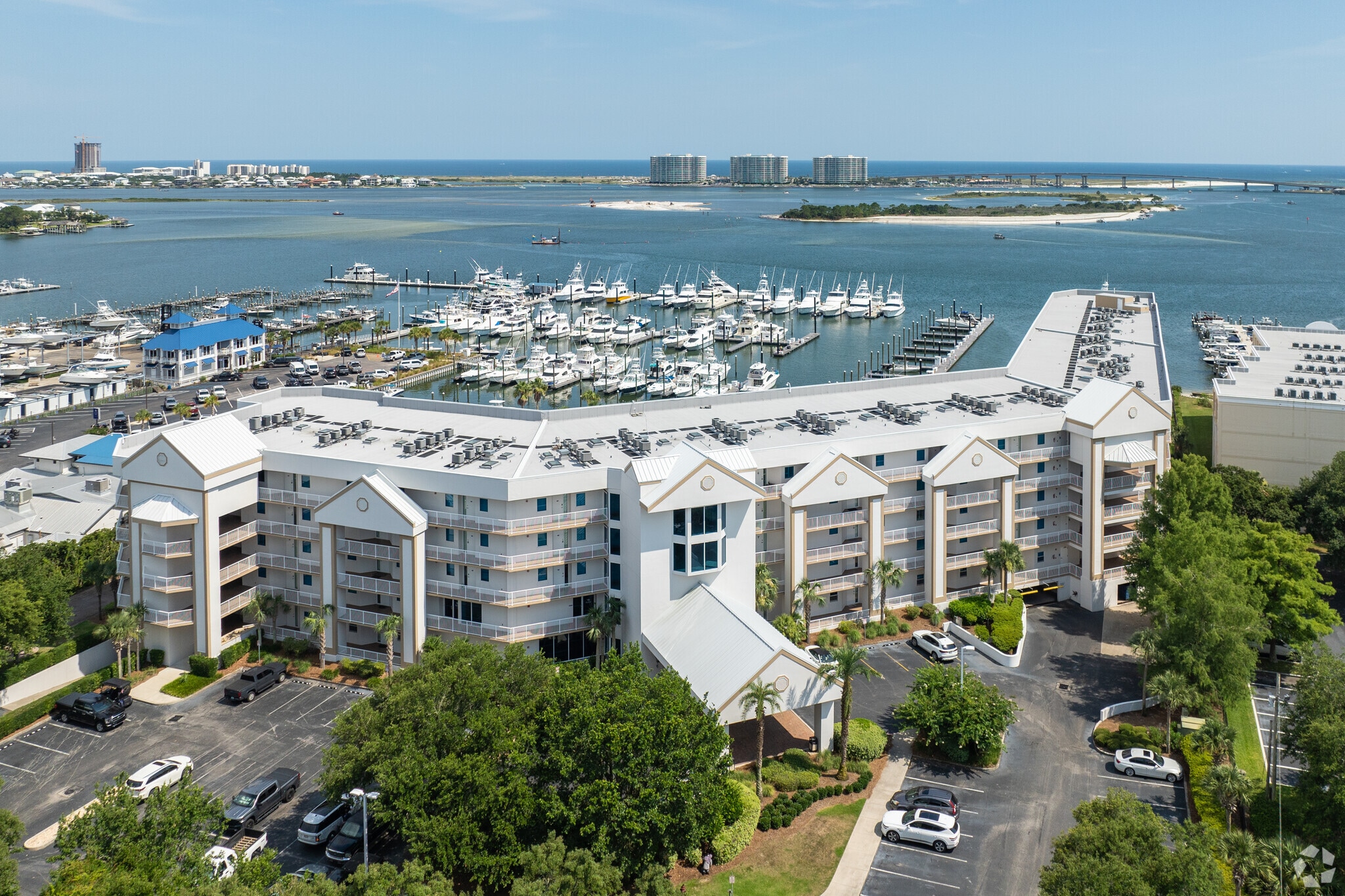 The Moorings, completed in 2006, offers a prime waterfront location in Orange Beach's Bear Point neighborhood. This condominium complex houses 96 units, providing residents with stunning views of Terry Cove and easy access to the Gulf of Mexico. Designed to maximize its coastal setting, The Moorings combines modern comfort with the laid-back charm of Alabama's Gulf Coast.