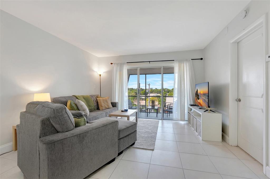 Este hermoso condominio de 1 dormitorio y 1 baño en el último piso, bellamente renovado, cuenta con una cocina moderna con encimeras de cuarzo, electrodomésticos de acero inoxidable y elegantes gabinetes blancos.