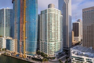 Met One, designed by Nichols Architects, is a contemporary 40-story condominium building located in the heart of Downtown Miami. Completed in 2008, this high-rise features 447 units and is known for its distinctive curved facade with a repetitive pattern of balconies and glass windows that wrap around its structure. The building offers residents a blend of urban convenience and coastal luxury, with stunning views of Biscayne Bay and the Miami skyline.