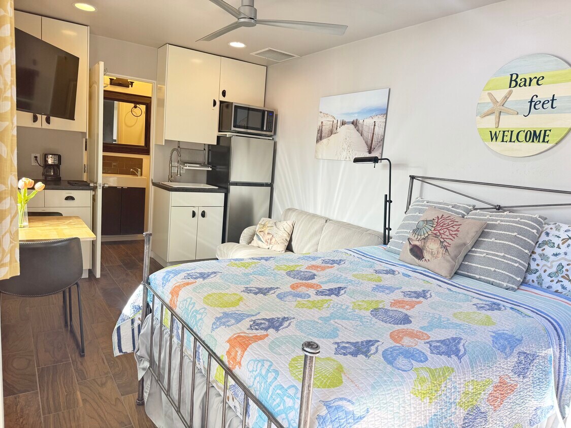 ¡ESTUDIO A POCOS PASOS DE LA PLAYA! $1850. Desde este estudio adosado, camine hasta la playa, restaurantes, tiendas Cedros, la estación de tren y la parada de autobús. Es una ubicación ideal para estudiantes o enfermeros itinerantes. El alquiler es para una sola persona. Se considera un contrato de arrendamiento anual con verificación de crédito y antecedentes. Los servicios públicos cuestan $200 e incluyen gas, electricidad, agua, recolección de basura, reciclaje, internet y Netflix.