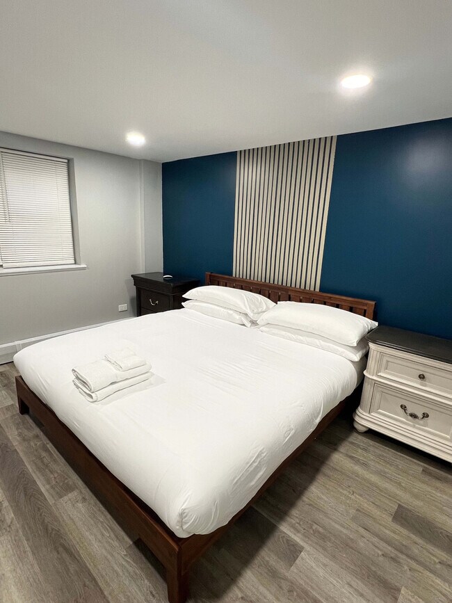 Siéntete como en casa en este elegante apartamento de 1 dormitorio y 1 baño en Lakeview, Chicago. Ubicado en un segundo piso con acceso por ascensor, ofrece un cómodo check-in automático. La casa cuenta con una amplia sala de estar con un televisor de 65 pulgadas y una lujosa cama king size para una relajación total. La cocina completamente equipada está lista para preparar comidas caseras, con utensilios básicos de cocina, café y té. Disfruta de entretenimiento de primera clase con televisores inteligentes y dispositivos de streaming (HBO Max, Netflix, Disney+, Hulu y más). Hay lavadora y secadora de monedas disponibles. Incluye una plaza de aparcamiento gratuita. Estás a solo 5 minutos del Wrigley Field, a 7 minutos del Zoológico Lincoln Park, a 10 minutos del centro y del Parque del Milenio, y a 15 minutos del Navy Pier. El horario de silencio es de 22:00 a 8:00. [SI]