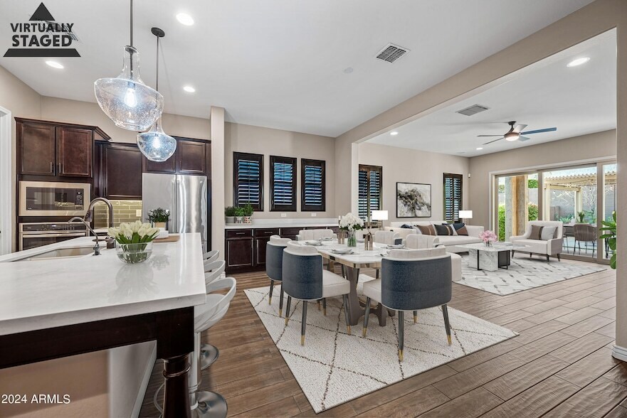 Come discover why luxury living in Sky Crossing is so sought after, with a community that offers a beautiful year-round pool, a fully equipped gym with exercise classes, numerous parks & playgrounds, walking trails, frequent events & group activities for all, conveniently located near shops, Mayo,101, 51, etc! This thoughtfully designed 1 story open floor plan, is adorned with neutral colors, which allow you to create your own cozy, classic, or modern feel throughout. The gourmet chef's kitchen features an oversized island with seating for 4, adjacent to a generously sized flex room which can be adapted for formal dining or office space. The great room boasts a spacious living area with an oversized sliding door providing plenty of natural light & indoor/outdoor entertaining opportunities