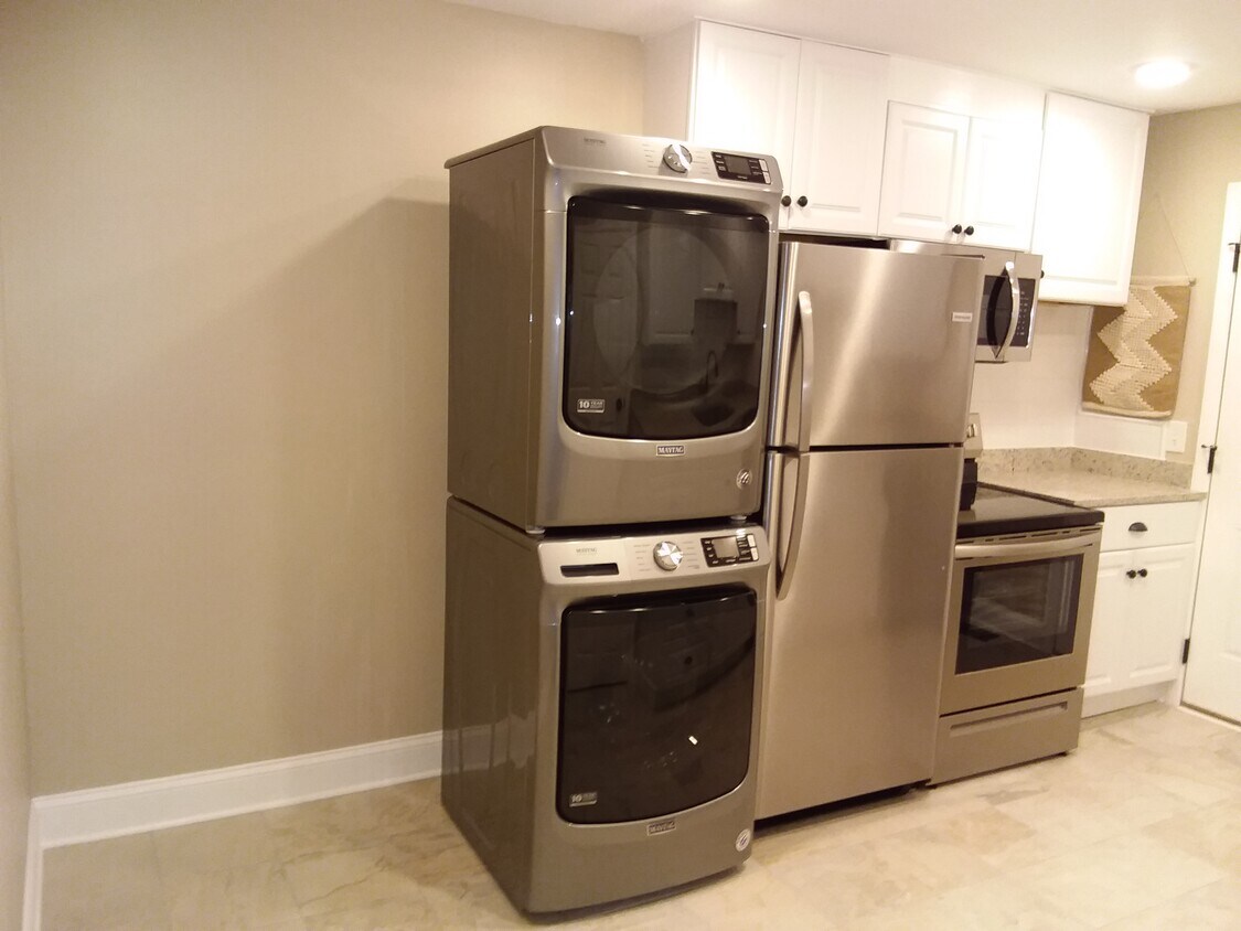 Nuevo remodelado. Los acabados de primera y accesorios. Electrodomésticos de acero inoxidable, una estufa, refrigerador, horno de microondas y lavadora & secadora incluidas.