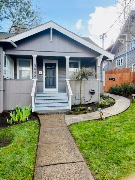 Traspasa la típica cerca blanca y descubre una casa que equilibra a la perfección el carácter vintage con una modernidad impecable. Esta residencia de más de 102 m², con 2 dormitorios y 1 baño, se encuentra en el corazón de la codiciada zona de Garden Home / Multnomah Village, ofreciendo un refugio sereno con un acceso inmejorable a la ciudad. Cocina de diseño: Completamente renovada con elegantes gabinetes grises, encimeras de cuarzo, un salpicadero clásico de azulejos de metro y electrodomésticos de acero inoxidable. Espacio amplio y luminoso: La amplia sala de estar cuenta con impecables pisos de madera noble en tonos miel e iluminación empotrada, que se integra de forma natural con un rincón comedor exclusivo bañado por la luz natural. Terraza acristalada versátil: Las puertas francesas conducen a una impresionante terraza acristalada frontal con pisos de madera más oscuros y ventanas envolventes, un espacio ideal para una luminosa oficina en casa o un estudio creativo. Baño: El baño cuenta con un lavabo con pedestal y una bañera/ducha completa. Lavadero funcional: Un lavadero y cuarto de servicio dedicado incluye lavadora y secadora, y amplio espacio para organizar todo. Oasis privado en el patio trasero: El patio trasero de varios niveles cuenta con una espaciosa terraza de madera con vistas a un exuberante paisaje escalonado con vegetación madura y parterres de piedra, ¡perfecto para disfrutar de los hermosos veranos de Oregón! El paisajismo está incluido; tenga en cuenta que este patio también se comparte con las Unidades B y C. Atractivo exterior: El clásico exterior gris de la casa se ve acentuado por un encantador porche delantero con columpio, un patio con cerca de estacas y un cómodo estacionamiento. Ubicación inmejorable: Ubicada en un vecindario que combina lo mejor de ambos mundos, está a pocos pasos de las boutiques y restaurantes locales de Multnomah Village y de los senderos recreativos de Gabriel Park. Esta ubicación es ideal para quienes viajan diariamente, ya que ofrece rápido acceso a OHSU, al centro de Portland y al área metropolitana. NOTA: Esta casa cuenta con una unidad de una habitación completamente independiente y ocupada en la planta superior, con su propia entrada privada, lo que garantiza la privacidad de todos los residentes. Hay una pequeña cabaña adicional de 400 pies cuadrados detrás de la casa; comparte solo el patio trasero. El agua, el alcantarillado, la basura, el paisajismo y el gas están incluidos en la renta mensual. El inquilino paga la electricidad y el wifi. Fecha de inicio de la solicitud: No se aceptarán ni revisarán solicitudes hasta el 16 de marzo de 2026. ¡Programe su visita hoy mismo! Criterios de selección y tarifas: Se realizará una verificación de antecedentes, crédito y antecedentes de desalojo, con un cargo de $29. Accesibilidad: La unidad no es accesible. Esta casa está siendo publicada por Annie Teav, agente inmobiliario principal con licencia del estado de Oregón, con número de licencia de Rise and Thrive Homes LLC 201234408.