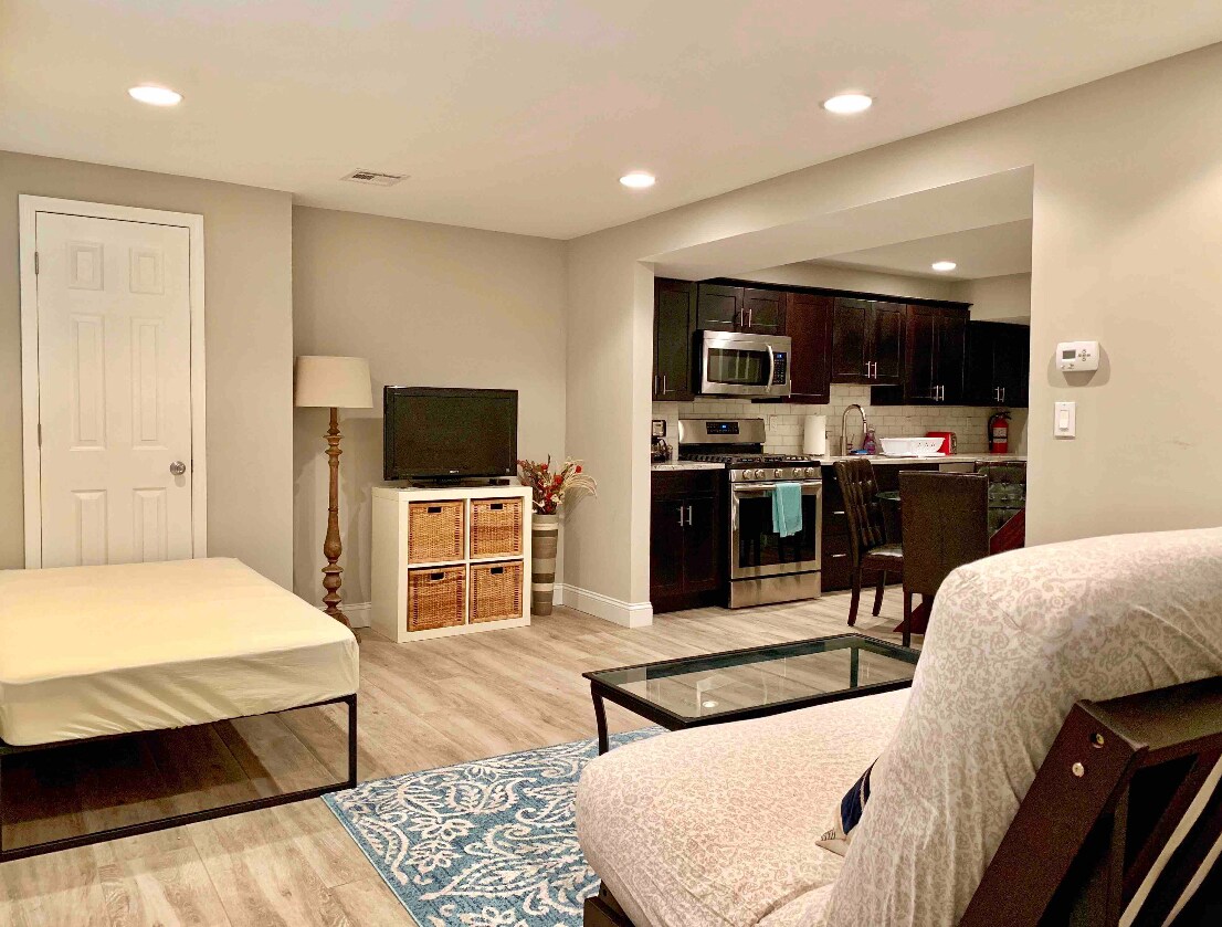 Ubicado en una calle tranquila del vibrante barrio "Village" del centro de Jersey City. Esta casa para dos familias está disponible para alquiler. El apartamento, recientemente renovado, está a nivel del jardín y cuenta con entrada independiente. Incluye: - Sala de estar - TV (con Apple TV) - Wifi - Cocina totalmente equipada - Baño completo - 1 cama queen - 1 futón/cama queen - 1 plaza de aparcamiento privado. El apartamento se encuentra a menos de 8 minutos a pie del tren PATH de Grove Street, disponible las 24 horas, que conecta con Nueva York, restaurantes y vida nocturna en la moderna Newark Avenue, y la escena artística y teatral. El espacio: Esta casa para dos familias está lista para alquiler. La unidad a nivel del jardín (con entrada independiente y apartamento completo). Los propietarios se alojan en el primer y segundo nivel (entrada independiente). El apartamento, recientemente renovado, cuenta con wifi gratuito, TV de pantalla plana (con Apple TV), dormitorio (con cama queen y armario), cocina totalmente equipada con electrodomésticos nuevos (estufa, microondas, horno, refrigerador y cafetera) y baño completo con agua caliente las 24 horas. Barrio: Aunque Newark Avenue es una calle concurrida (a solo 7 minutos a pie del apartamento), este se encuentra en un barrio agradable y tranquilo. Mascotas: Como propietarios de mascotas, aceptamos solicitudes de quienes deseen alquilar con su(s) mascota(s).