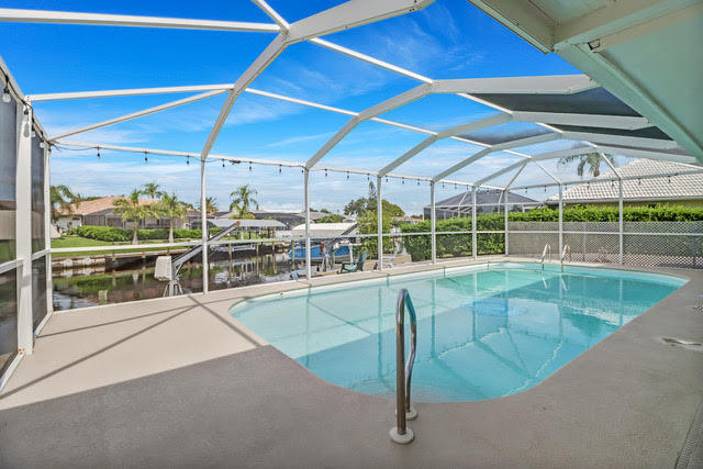 Disponible el 1 de mayo con contratos de arrendamiento de 3, 6 o 12 meses. Esta hermosa casa frente al mar, que admite mascotas, se encuentra en el soleado sureste de Cape Coral. Está completamente amueblada con wifi, aire acondicionado, piscina climatizada de agua salada, Smart TV y mucho más. ¡Disfrute de impresionantes vistas y atardeceres donde se sentirá como si estuviera de vacaciones todos los días! Esta casa cuenta con 2 dormitorios, 2 baños y garaje adjunto para 2 autos. La sala de estar cuenta con un Smart TV de 75" y ofrece espacio adicional para dormir con un sofá cama tamaño queen. El espacioso dormitorio principal cuenta con una cama king size de espuma viscoelástica, baño privado y Smart TV. El segundo dormitorio cuenta con dos camas matrimoniales de espuma viscoelástica, Smart TV y baño privado con acceso a la piscina. El lanai exterior cuenta con Smart TV y ofrece amplio espacio para tomar el sol y asar junto a la enorme piscina climatizada de agua salada. Su ubicación junto a un canal de acceso al golfo y a veleros, en el corazón de la comunidad de Palaco Grande, convierte a esta casa en un verdadero paraíso para los navegantes. Tenemos una ubicación céntrica cerca de una amplia variedad de restaurantes, tiendas, cafeterías, parques y mucho más. También se proporcionan 2 kayaks y una bicicleta, además de un patio cercado, ya que el propietario admite mascotas. A poca distancia en coche de Ft. Myers Beach y las islas barrera circundantes, y a poca distancia a pie de restaurantes populares como Point 57, Fins Seafood & Bar, Mexico Lindo Restaurant y mucho más. El nuevo Slipway Food Truck & Marina, una experiencia gastronómica de primer nivel al aire libre frente al mar con espectáculos en vivo. Música, servicios de navegación, una gran variedad de food trucks y espectaculares vistas del río Caloosahatchee a solo 4 km. El propietario paga el servicio de piscina, jardinería, cable e internet. ¡Le encantará esta hermosa casa y comunidad, y todo lo que ofrece!