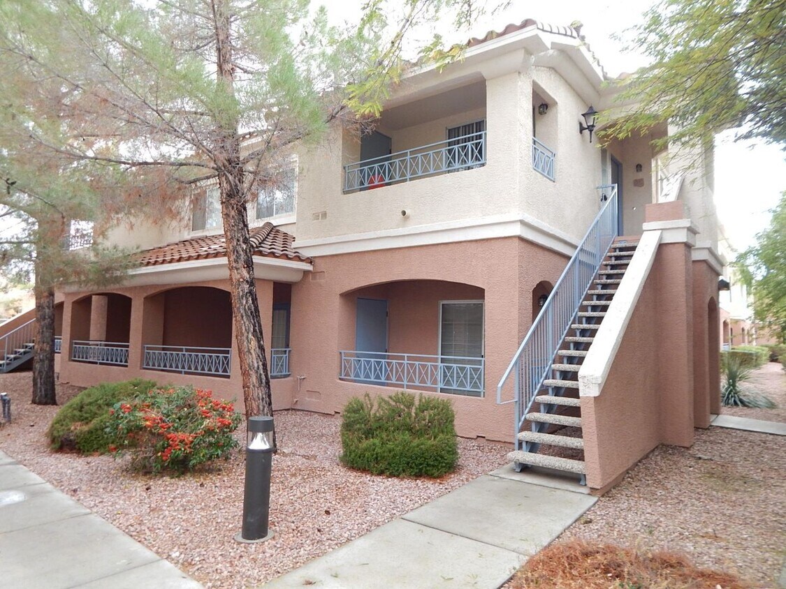 Acogedor apartamento en el primer piso con 2 dormitorios y 2 baños. Ubicado en una comunidad con vigilancia en Summerlin. La comunidad cuenta con piscina, spa, casa club y estacionamiento asignado. Una amplia sala de estar al frente se conecta con el comedor y la cocina. La cocina cuenta con encimeras y pisos de baldosas. El amplio dormitorio principal cuenta con vestidor. Lavadora y secadora estándar. Un agradable patio cubierto junto a la sala de estar. Convenientemente ubicado cerca de parques, tiendas y escuelas.