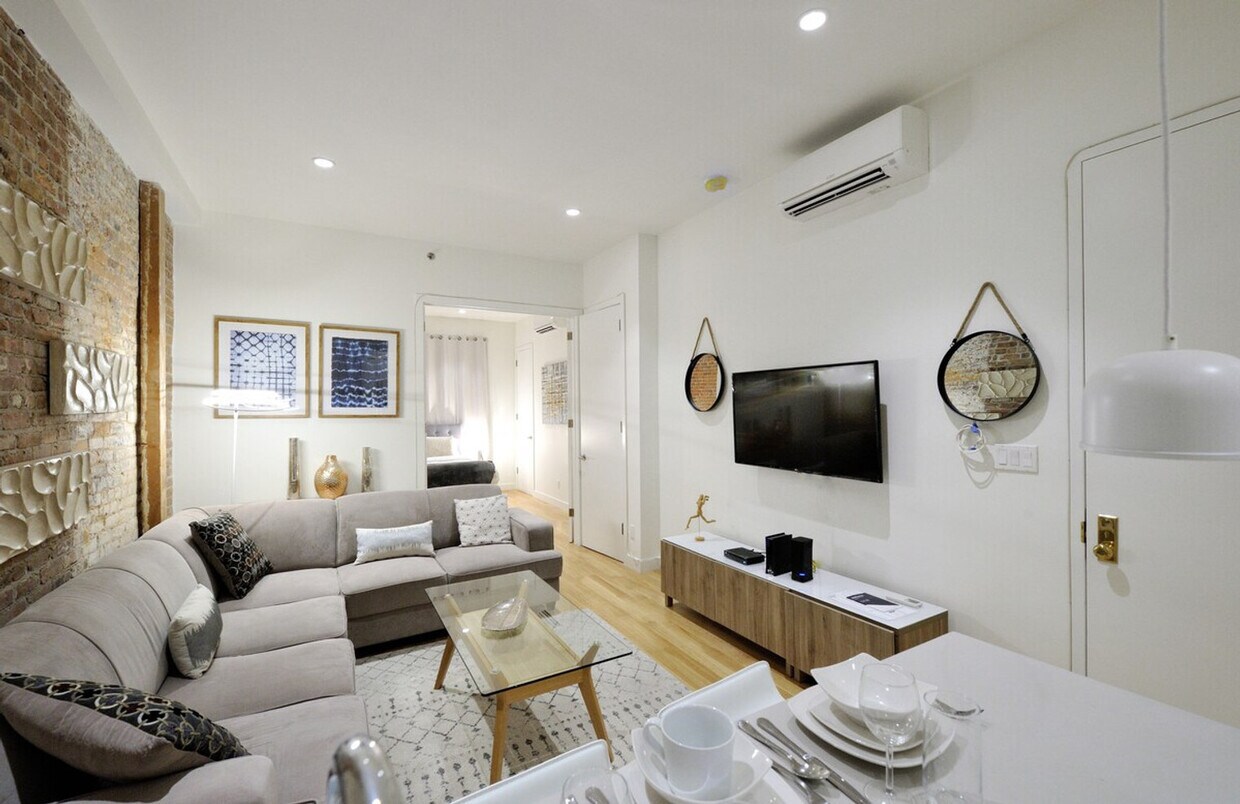La tarifa anunciada de $6,897 al mes es el precio más bajo disponible, basado en una estadía de 30 días con fecha de mudanza el 4 de marzo de 2026. Las tarifas varían según la duración de la estadía, la temporada y otros parámetros. Para conocer el precio exacto y otros componentes del precio, visite nuestro sitio web e ingrese las fechas de entrada y salida deseadas. La tarifa se aplica si se factura por adelantado; puede ser mayor si se factura en varios pagos. Siéntase como en casa en este encantador apartamento de 2 habitaciones y 2 baños a solo unos pasos de Times Square. Ubicado en el segundo piso de un edificio sin ascensor, accesible por un tramo de escaleras, este apartamento ofrece una escapada neoyorquina por excelencia. Este apartamento bellamente amueblado cuenta con paredes de ladrillo visto, una cocina totalmente equipada y lavadora y secadora. La cocina incluye electrodomésticos modernos como lavavajillas, refrigerador, horno y estufa, así como utensilios de cocina y vajilla completos. La isla de la cocina con barra es perfecta para disfrutar de un desayuno rápido o bebidas. Disfrute del acceso compartido a la azotea. Ubicado en el corazón de Manhattan, este apartamento te sitúa a pocos pasos de algunas de las atracciones más famosas de Nueva York. Pasea hasta Times Square, disfruta de un espectáculo de Broadway o explora restaurantes de primera clase a la vuelta de la esquina. Con fácil acceso al transporte público, podrás explorar toda la ciudad con facilidad. Es normal encontrar ruidos típicos de la ciudad, como el tráfico, las sirenas y la actividad callejera, especialmente debido a su céntrica ubicación cerca de Times Square. Si tienes el sueño ligero, te recomendamos traer tapones para los oídos. Ten en cuenta que se requiere un depósito de seguridad para esta unidad. El socio se pondrá en contacto contigo para cobrarlo y gestionarlo en línea al realizar la reserva. [SI]