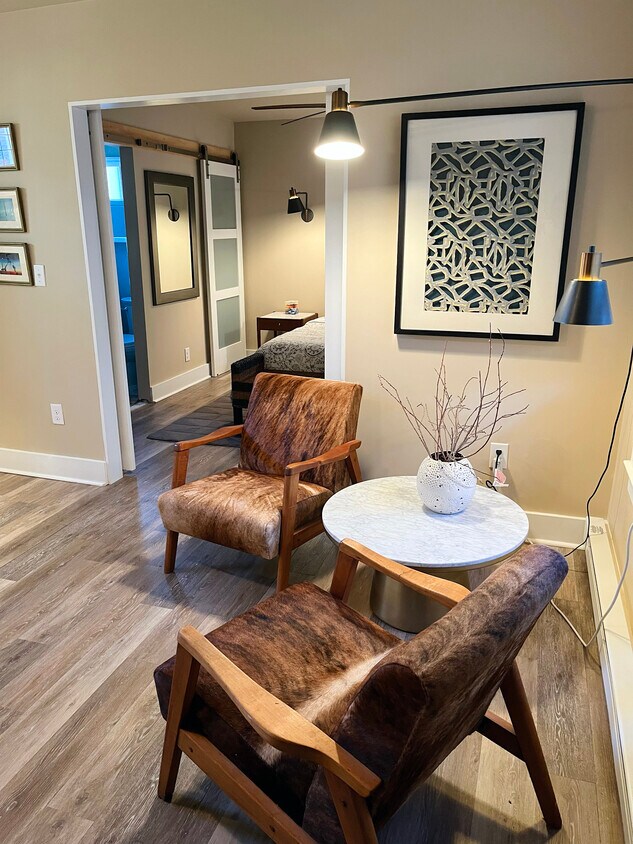 Ubicado en una propiedad histórica única con un hermoso entorno natural, este encantador apartamento de una habitación está completamente renovado y amueblado con esmero. El espacio cuenta con una decoración elegante, pisos de madera noble y puertas corredizas estilo granero que crean una sensación de amplitud con un toque de diseño distintivo. La acogedora sala de estar incluye un televisor inteligente y todo lo necesario para sentirse como en casa: vajilla, ropa de cama y todos los artículos esenciales están incluidos. La cocina está completamente renovada y cuenta con lavavajillas y microondas. Con una ubicación ideal en North Asheville, cerca de una parada de autobús, este apartamento está a solo 10 minutos del centro de Asheville y a 5 minutos de la UNCA, lo que lo hace perfecto para quienes desean acceder fácilmente a la ciudad mientras disfrutan de un entorno tranquilo y verde. Hay estacionamiento privado y lavandería compartida de monedas en el lugar. No se admiten mascotas. El contrato de arrendamiento de 1 año incluye agua, alcantarillado y televisión digital. El inquilino paga la electricidad.