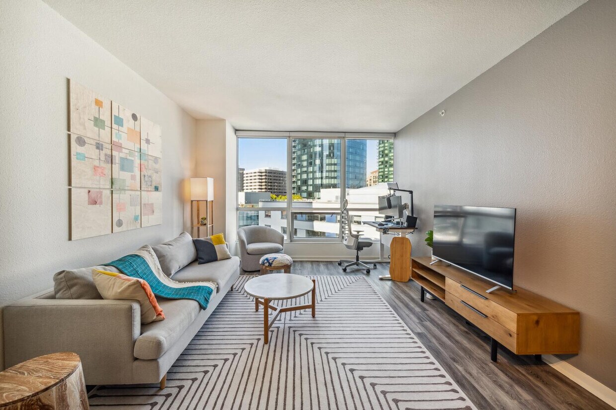 La tarifa anunciada de $6,200 al mes es la más baja disponible, basada en una estadía de un mes con fecha de entrada el 7 de abril de 2026. Las tarifas varían según la duración de la estadía, la temporada y otros parámetros. Para conocer el precio exacto y otros componentes, visite nuestro sitio web e ingrese las fechas de entrada y salida deseadas. La tarifa se aplica al pagar por adelantado; puede ser mayor si se factura en varios pagos. Siéntase como en casa en este apartamento de 1 dormitorio completamente amueblado en el centro de San Francisco, en Beale Street, que ofrece lo último en vida urbana de lujo. Este apartamento está diseñado a medida para quienes trabajan a distancia e incluye una cocina totalmente equipada, un baño completo, amplio espacio de almacenamiento y un televisor inteligente. Las comodidades incluyen una cocina equipada, lavavajillas, lavadora y secadora en el apartamento, ventanales con vistas al Puente de la Bahía, un salón social interior con mesa de billar, TV y cocina compartida, un comedor al aire libre con barbacoa, TV, fogatas, cómodos asientos y un exuberante jardín, jacuzzi, sauna, gimnasio abierto las 24 horas, centro de negocios con áreas privadas y salas de conferencias, y servicio de tintorería. Hay estacionamiento seguro en garaje disponible desde $400 al mes, sujeto a disponibilidad, y taquillas disponibles desde $55 al mes. Disfrute del vibrante estilo de vida de Rincon Hill y el distrito financiero justo al lado de su puerta, o dé un corto paseo hasta el paseo marítimo y explore el Embarcadero junto a la bahía. Con restaurantes, supermercados, tiendas y museos a poca distancia, tendrá todo lo que necesita al alcance de la mano. Este apartamento no tiene aire acondicionado. La velocidad de internet no está garantizada y puede variar según el modelo de su computadora y la ubicación del router. Hay servicio de mantenimiento de emergencia disponible las 24 horas. Incluye internet privado de alta velocidad, escritorio de pie (Uplift), silla de trabajo ergonómica (Uplift), monitor ultrapanorámico de 34 pulgadas (Samsung), micrófono (Blue Yeti), cámara web (Logitech), altavoces (Bose), luz LED de streaming, pantalla verde, teclado (Logitech), ratón (Logitech), soporte para portátil y base de acoplamiento TOTU 16 en 1 con triple pantalla y USB-C 3.1. No incluye portátil. [SI]