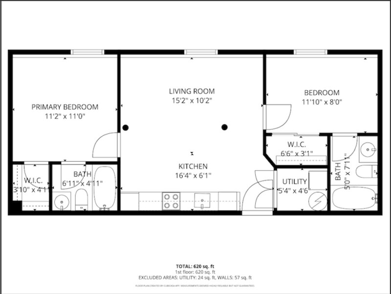 2 habitaciones, 1 baño, 737 pies²