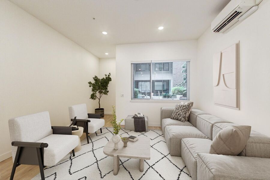 3D tour of similar unit: Your modern two bedroom, one and half bathroom apartment features two levels with living area on the ground floor and bedrooms upstairs. Full compliment of appliances including washer and dryer and central air conditioning for your convenience. Right outside your door you'll find a gorgeous courtyard with comfortable seating for lounging or dining, and a fire pit for breezy Oakland nights. Head upstairs to the rooftop deck to catch the views of Downtown and the surrounding hills. The space is complete with BBQ grills, couches, and lounge chairs. The property also offers a pet washing station and other everyday conveniences like bike storage and an Amazon package locker. The Amelia is centrally located in Pill Hill, within walking distance of bars, restaurants, and everyday necessities. Grab your groceries from nearby Sprouts Market or Whole Foods. If you're a sports fan, CommonWealth Cafe and Tavern just down the street serves up delicious pub food and the latest matches. Other local favorites include Drake's Dealership, The Crown, and Oaklandia Cafe. Unique Features: Air Conditioning Laundry In-Unit Plank Flooring Quartz Counter-tops and Tile Backsplash Dishwasher, microwave, garbage disposal Noise-reducing, Insulated Dual-pane Windows Outdoor Covered Community Space on Every Floor Courtyard with Fire Pit and Dining Areas Views of SF and Oakland Pet Friendly Bike Storage Amazon Lockers Rooftop Terrace with Barbecues Dog Washing Station Keyless Entry Online Payments Secure parking available All utilities paid by tenant. Pet rent: $50 Parking: $185 plus Oakland parking tax Application Criteria: - Positive credit history - Gross Income of 3X the base rent - Employment and rental verifications DRE # 01902745 Amazon Locker Bike Parking None Pet Wash Roof Deck Shared Patio Views