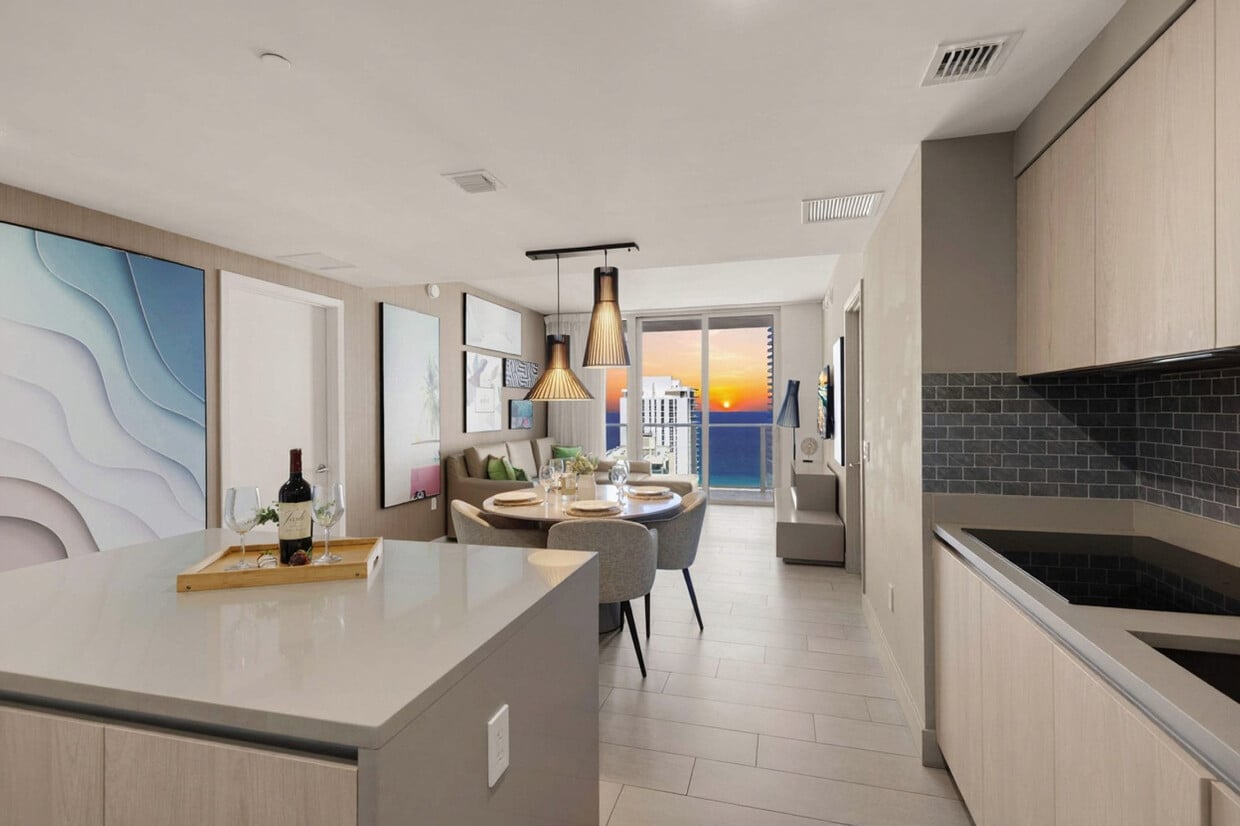 Siéntase como en casa en este nuevo y lujoso condominio frente a Hollywood Beach. Este apartamento de 2 dormitorios, ubicado en el piso 19, cuenta con cocina completa, 2 baños completos, balcón frente al mar y lavadora y secadora, con impresionantes vistas al mar. Este elegante apartamento combina madera y piedra natural con texturas orgánicas y tecnología de vanguardia. Destaca por su cocina totalmente equipada con refrigerador/congelador de acero inoxidable, estufa de vitrocerámica, horno integrado, lavavajillas silencioso, microondas integrado, estufa, vajilla, cafetera, secador de pelo, caja fuerte electrónica, plancha y tabla de planchar, lavadora/secadora en el apartamento y televisores en cada habitación. Las comodidades incluyen dos piscinas infinitas con vista al mar y a la bahía, solárium, cabañas privadas, gimnasio y jacuzzi. El servicio de valet parking está disponible por $42 por noche (de 1 a 6 noches), $15 por noche (de 7 a 29 noches) y $9.33 por noche (de 30 noches o más). Hay una cuna portátil disponible gratuitamente bajo petición. Justo al otro lado del complejo, encontrará el paseo marítimo de Hollywood Beach y kilómetros de playas designadas como Blue Wave. Está rodeado de numerosos restaurantes y del mundialmente famoso Gulfstream Park, donde podrá cenar, disfrutar de las carreras de caballos o probar suerte en el casino a cinco minutos. Al oeste, puede visitar el famoso e imponente Hard Rock Guitar Hotel & Casino, y es el lugar perfecto para estar en la playa si asiste a un evento en el Hard Rock Stadium. Al sur, puede continuar hasta el famoso Aventura Mall, o si le apetece una vida nocturna aventurera, puede dirigirse a South Beach para divertirse toda la noche. Al norte, puede disfrutar de más tiendas y restaurantes en la ciudad de Fort Lauderdale. Este apartamento también está a minutos del Aeropuerto de Fort Lauderdale. Nadar es bajo su propia responsabilidad, ya que no hay socorristas de guardia. Los niños deben estar supervisados por un adulto responsable en todo momento. No se permite bucear ni correr. Por favor, mantenga todas las puertas cerradas y el aire acondicionado encendido en todo momento para evitar la condensación y daños a la propiedad. Se cobrará una tarifa del resort al momento del registro de entrada. [SI]