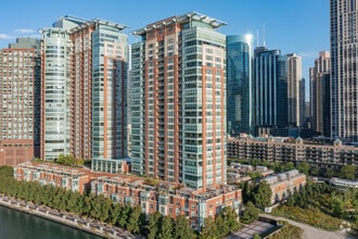 Riverview Condominiums stands tall at 32 stories in the heart of Streeterville, Chicago. Completed in 2002, this modern high-rise features 246 luxurious condo units. The building's symmetrical facade, adorned with a combination of glass and terracotta-colored cladding, offers a sleek and contemporary look. With its prime location along the Chicago River, residents enjoy stunning views of Lake Michigan, Navy Pier, and the iconic city skyline.