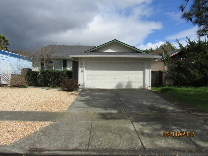 Esta propiedad está convenientemente ubicada cerca de autopistas, escuelas, parques, tiendas, restaurantes y mucho más. La casa de una sola planta tiene aproximadamente 1110 pies cuadrados, con un plano de planta muy bonito y pintura interior nueva en todas partes. La cocina tiene lo siguiente: estufa a gas, lavavajillas, triturador de basura, mucho espacio para gabinetes y acceso al patio trasero. La sala familiar es grande con una chimenea de leña. Los dos dormitorios de invitados son de tamaño estándar. El dormitorio principal y el baño son espaciosos y tienen acceso adicional al patio trasero. Esta casa también cuenta con un horno de aire forzado y aire acondicionado. El propietario proporciona servicio de jardinería para el mantenimiento del patio delantero. Hay un garaje para 2 autos con conexiones para lavadora y secadora. ¡No se admiten mascotas! El inquilino es responsable de todos los servicios públicos. • Disponible: Aproximadamente el 1 de enero de 2026 • Alquiler $3,300 mensuales • Depósito de seguridad: $3,600 • Plazo del contrato de arrendamiento: Contrato de arrendamiento de un año • Ubicación: 416 Korbel Place Le solicitamos que conduzca para obtener una vista previa de esta propiedad, pero no moleste a los ocupantes. Si desea solicitar una visita, comuníquese con Timely PM. Si desea ver más fotos, obtener indicaciones o solicitar en línea, visite nuestro sitio web. ¡Gracias por su interés! Timely Properties, Inc. BRE 02096434. Esta propiedad permite visitas autoguiadas sin cita previa. Contáctenos para más detalles.