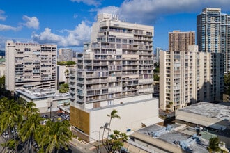 Sunset Towers, a 15-story condominium building completed in 1969, stands as a modern high-rise with a prominent use of glass on its balconies, offering a contemporary look amidst its urban surroundings. Located in the vibrant Kaka'ako neighborhood, this building comprises 81 units and provides residents with a blend of convenience and style. Its strategic location places it just across the street from the Ala Moana Hotel and a stone's throw away from the Ala Moana Shopping Center, making it an ideal choice for those seeking a cosmopolitan lifestyle.