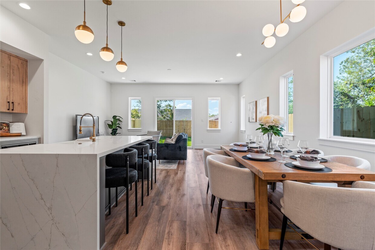 Bienvenido a 4218 Nichols Street, a menos de 10 minutos del centro, del Proyecto East River y de The Post HTX. Esta moderna casa ofrece la combinación perfecta de comodidad urbana y espacio al aire libre. Disfrute de una entrada privada y un amplio patio, ideal para relajarse o entretenerse. En el interior, la luz natural inunda la cocina y el comedor, que cuentan con una isla de cuarzo con cascada, estantes flotantes con iluminación LED y una barra. Con techos de 3 metros de altura, un patio cubierto y un tranquilo balcón, ¡esta casa es una joya escondida! Incluye lavadora, secadora y refrigerador. ¡Programe su visita hoy mismo! MLS# 10024503