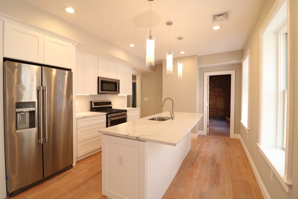 Sea el primero en vivir en esta impresionante residencia de 4 dormitorios y 2 baños completos en uno de los barrios más codiciados. Diseñada con esmero y completamente renovada, esta casa combina acabados modernos con una comodidad excepcional. El luminoso espacio de estar cuenta con relucientes pisos de madera de roble e iluminación empotrada en toda la casa. El diseño abierto incluye una amplia sala de estar y una cocina comedor, realzada por una isla de cuarzo estilo cascada, perfecta para el entretenimiento. La cocina de chef está equipada con gabinetes blancos estilo shaker, encimeras de cuarzo y una completa gama de electrodomésticos de acero inoxidable, que incluyen lavavajillas, triturador de basura y microondas empotrados. Disfrute de amplios dormitorios con amplios armarios, ventanas Pella nuevas y aislamiento de espuma en aerosol para una eficiencia energética superior y comodidad durante todo el año. La calefacción y el aire acondicionado centrales, el agua caliente sin tanque y la lavandería en el edificio le brindan comodidad diaria. No se admiten estudiantes universitarios. MLS# 73477489