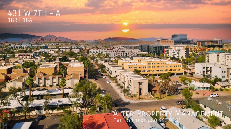 Las opciones de transporte disponibles en Tempe incluyen University Dr/Ash, a 0.3 milla de 431 W 7th St Unidad A. 431 W 7th St Unidad A está cerca de Phoenix Sky Harbor International, a 4.9 millas o 10 minutos de distancia, y de Phoenix-Mesa Gateway, a 24.2 millas o 37 minutos de distancia.