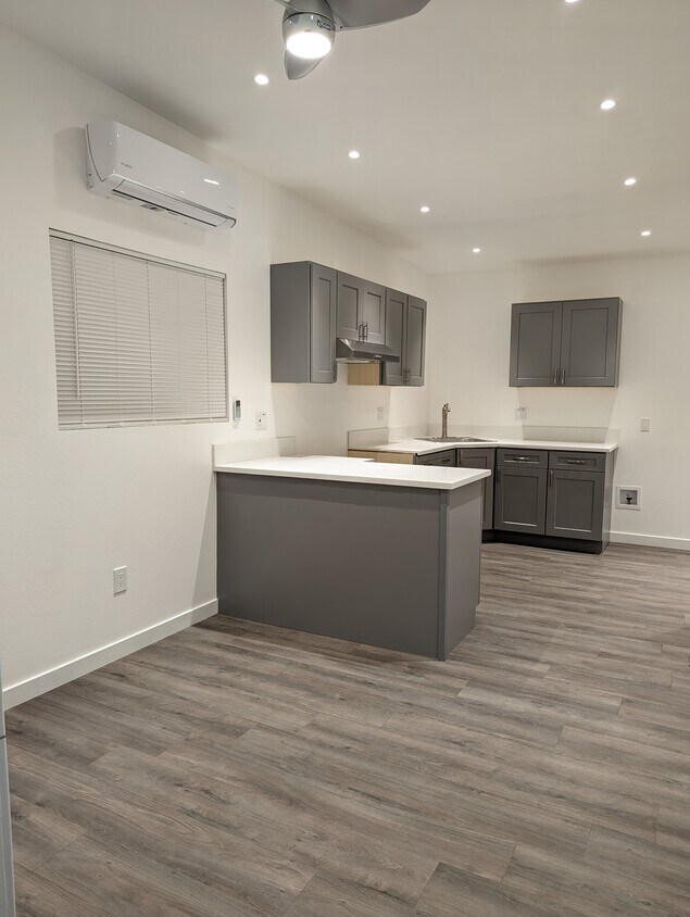 Recientemente construido cada apartamento. Sé el primero en vivir en este hermoso hotel recientemente construido de vuelta a casa. Este apartamento es de 2 habitaciones, 1 baño, que cuenta con conexiones para lavadora y secadora, pisos laminados, cocina completa, con un "L" isla, persianas en todas las ventanas, ventiladores en ambas habitaciones y la sala de estar, calentador de aire acondicionado & dividir el apartamento. Gasto de agua incluido. Todos los demás servicios públicos no incluidos. El apartamento también cuenta con un patio privado y está separado de la casa principal. Estacionamiento en la calle con permisos de la ciudad. Máximo de 2 automóviles. Está convenientemente cerca de tiendas, supermercados, bancos, restaurantes, autopistas, y el transporte público. Te invitamos a llamarnos para programar una visita.