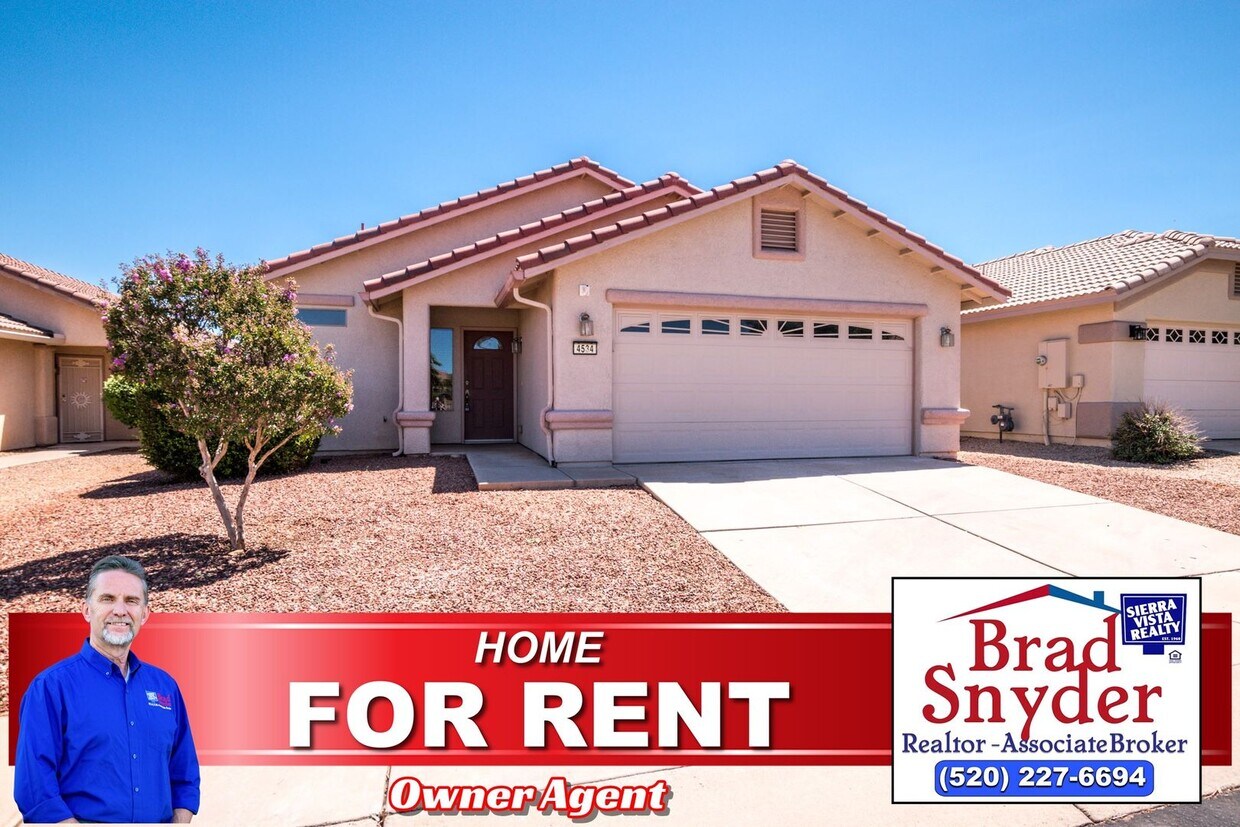 Espaciosa casa de 3 dormitorios con impresionantes vistas. Esta hermosa casa de 3 dormitorios y 2 baños ofrece un diseño abierto, perfecto para el entretenimiento y la vida cotidiana. Garaje para 2 autos, aire acondicionado central, la espaciosa sala de estar cuenta con una acogedora chimenea de gas, mientras que la moderna cocina cuenta con electrodomésticos de alta gama. El lavadero incluye conexiones para lavadora y secadora. Uno de los aspectos más destacados de esta casa es su terreno con impresionantes vistas, que garantiza privacidad y vistas espectaculares. El patio cercado con terraza cubierta ofrece un espacio al aire libre ideal para relajarse y entretenerse. Ubicada en la atractiva subdivisión Holiday, los residentes tienen acceso a un parque comunitario, casa club, piscina, spa y mucho más. Esta ubicación privilegiada está a solo minutos de Fort Huachuca, lo que la hace perfecta para familias militares. Experimente lo mejor de la vida en Sierra Vista en esta comunidad estilo resort. (Propietario-Agente) Llame a Sierra Vista Realty al para programar una visita. Se requiere un contrato de arrendamiento de un año. El inquilino paga todos los servicios públicos. *El alquiler no incluye el cargo de $40.00 por alcantarillado y basura. Indicaciones: Sur por la autopista 92, Este en Canyon Del Flores, Norte en el letrero de Holiday hacia Resort Drive, A la derecha de la casa club. Derecha en Bryce Canyon, Izquierda en Redwood Street hasta una casa a la derecha.