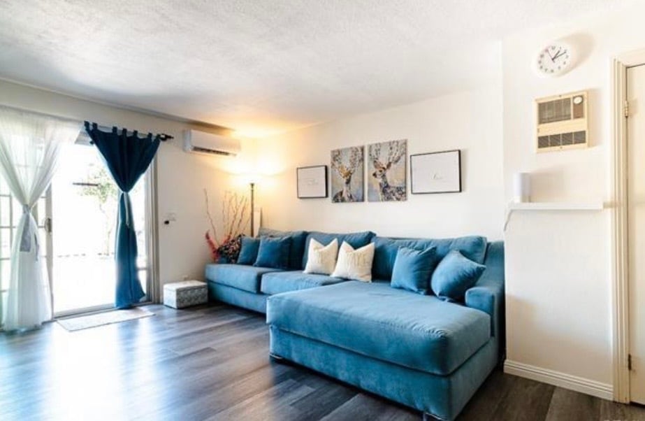 Casa adosada de dos pisos con acceso controlado, con 2 amplios dormitorios y 2.5 baños, con pisos de vinilo recientemente renovados en toda la sala de estar y los dormitorios. La sala de estar ofrece amplio espacio para relajarse e incluye ventiladores de techo para mayor comodidad. La cocina está equipada con las comodidades esenciales y el baño principal cuenta con tocador doble. Un bonito patio pequeño con terraza. Incluye dos lugares de estacionamiento asignados. Cerca de autopistas, a 10 minutos del centro, Coronado, North Park, South Park, Little Italy y muchos centros comerciales. A poca distancia de paradas de tranvía y autobús. También cerca de bases militares. Aire acondicionado y ventilador de techo recién instalados en la sala de estar. Cada dormitorio ofrece suficiente espacio de almacenamiento, lo que contribuye a una distribución funcional. Los dormitorios también incluyen aire acondicionado. Calentador de agua y ventilación de baño recién instalados. Conexión para lavadora/secadora apilable cerca de los dormitorios. Se incluirá en el alquiler un refrigerador nuevo con sistema de filtración de agua. Todas las paredes están recién pintadas de blanco. Agua y basura también incluidas.