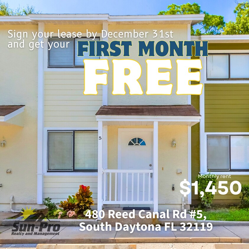 Move In by December 31st and get your FIRST MONTH FREE!! Welcome to comfortable, convenient living in the heart of South Daytona! This charming unit at 480 Reed Canal Rd #5 offers the perfect blend of affordability, location, and style—made even better by an exclusive move-in special you won't find anywhere else. Step into a bright and welcoming space designed for easy living. Whether you're relaxing in the cozy living area or preparing meals in the well-appointed kitchen, this home delivers the comfort and functionality you need. Outside your door, enjoy quick access to shopping, dining, parks, and the beach—plus easy commutes to Daytona's most popular spots. Don't wait—homes with incentives like this go fast! Reach out today to schedule a viewing. Qualified applicants are encouraged to apply. $75.00 nonrefundable Application Fee per adult. One month's rent security deposit, $150.00 administrative fee, and first month's rent required prior to move-in. All Sun-Pro Realty and Management residents are enrolled in the Resident Benefits Package (RBP) for an additional $50.00 per month which includes renters insurance, HVAC air filter delivery (for applicable properties), credit building to help boost your credit score with timely rent payments, $1M Identity Protection, move-in concierge service making utility connection and home service setup a breeze during your move-in, our best-in-class resident rewards program, and much more! More details upon application. Book your self-guided tour today by visiting our website: www.sunpro.realty/homes-for-rent By submitting your information on this page you consent to being contacted by the Property Manager and RentEngine via SMS, phone, or email.