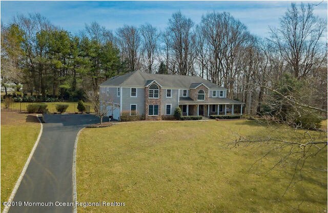 Hermosos Holmdel Colonial en un 1,3 acres con amplio patio del frente y porche circundante que ofrece toneladas de atractivo exterior. 5 bdrms/4,5 baño con oficina en la planta superior. Nada para hacer, pero la mudanza. Recién pintada en todo. Wall abre blanco y negro la sala de estar y comedor de descuento para crear la cocina de concepto abierto. Amplio solárium de todo el año con acceso a la terraza libre de mantenimiento a través de puertas dobles. Muy patio trasero privado con green de práctica. Hermosos jardines. Nuevos revestimientos, ventanas y techo. Primer piso, habitación y baño completo perfecta para una niñera o residentes. Sistema de riego sin servicio de valet en porche delantero para tus cestos colgantes. Enorme habitación principal y baño, con 2 baños completos de los pasillos para el resto de 3 habitaciones en planta superior. Convenientemente ubicado junto a Holmdel Park. Sótano acabado con mucho espacio de almacenaje.