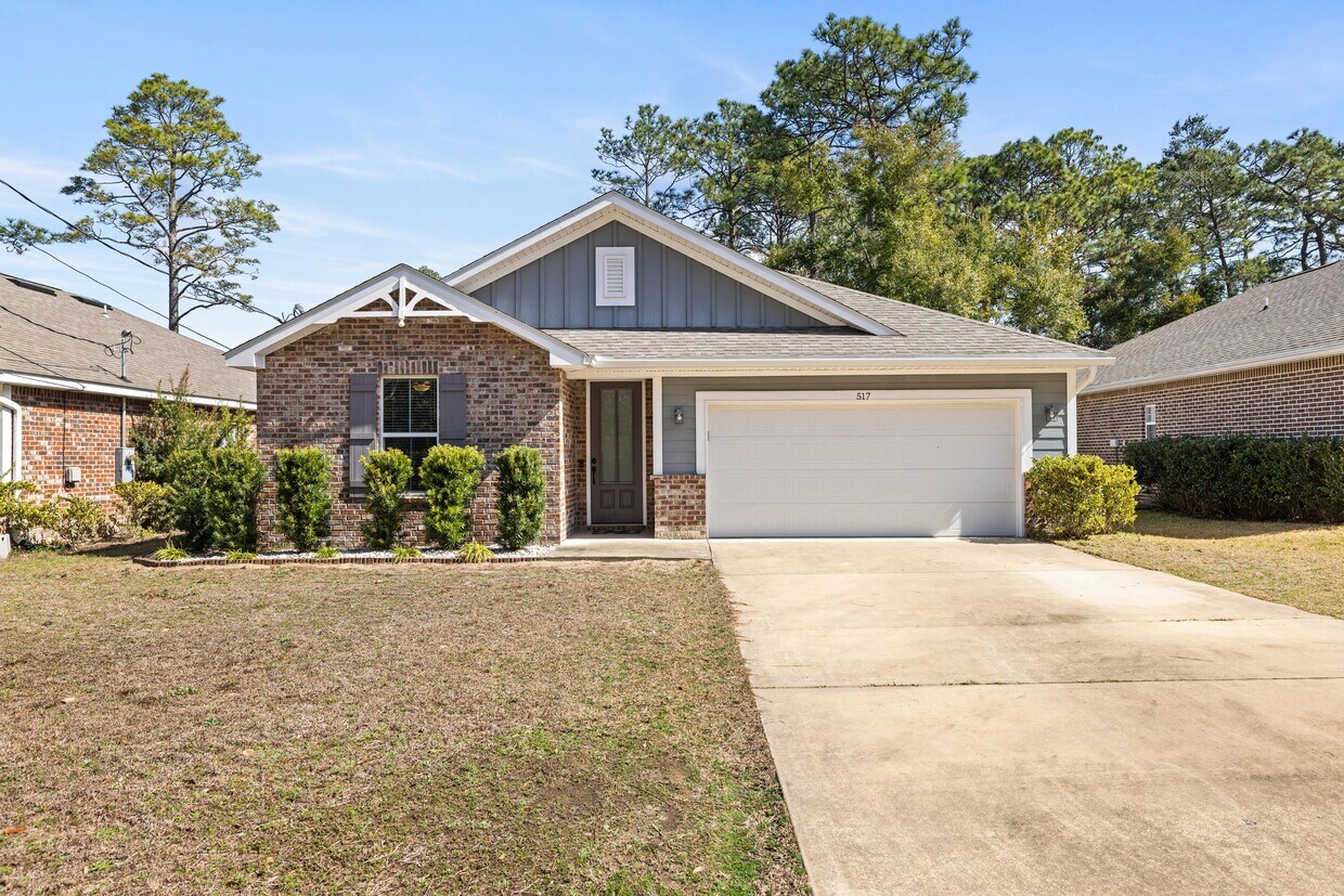Lista para mudarse a mediados de abril, esta casa de 4 dormitorios y 2 baños ofrece 1847 pies cuadrados de cómodo espacio habitable en el corazón de Valparaíso. Escondida en un tranquilo terreno esquinero, esta casa de estilo artesanal ofrece la combinación perfecta de privacidad y comodidad, ubicada a solo 3 millas de la Base de la Fuerza Aérea Eglin, a 3 millas de las escuelas y a 1 milla del hermoso Parque Turkey Creek. En el interior, notará de inmediato los techos de 9 pies y la abundante luz natural que crean un ambiente luminoso y acogedor en toda la casa. El diseño de concepto abierto conecta a la perfección las áreas de cocina, comedor y sala de estar, lo que lo convierte en el espacio perfecto para la vida diaria y el entretenimiento. La cocina está cuidadosamente diseñada con gabinetes blancos estilo shaker con cajones de cierre suave, una isla espresso en contraste, encimeras de granito, fregadero rústico, electrodomésticos de acero inoxidable, salpicadero de azulejos blancos tipo metro y una amplia despensa. La distribución de los dormitorios divididos brinda mayor privacidad, con la suite principal separada de los dormitorios adicionales. El baño principal cuenta con un tocador doble con encimeras de granito, vestidor y una ducha a ras de suelo con hermosos azulejos, creando un cómodo refugio al final del día. Además, incluye un lavadero convenientemente ubicado junto al garaje para dos autos con acceso al ático. En la parte trasera, disfrutará de un entorno tranquilo, ya que la propiedad colinda con un terreno arbolado, sin casas detrás. Esta casa ofrece el equilibrio perfecto entre acabados modernos, diseño funcional y un entorno sereno, a la vez que se encuentra cerca de todo lo que Valparaíso y sus alrededores tienen para ofrecer. *Verificación de antecedentes y crédito *Se admiten perros previa aprobación *Se cobra una tarifa de limpieza al finalizar la mudanza