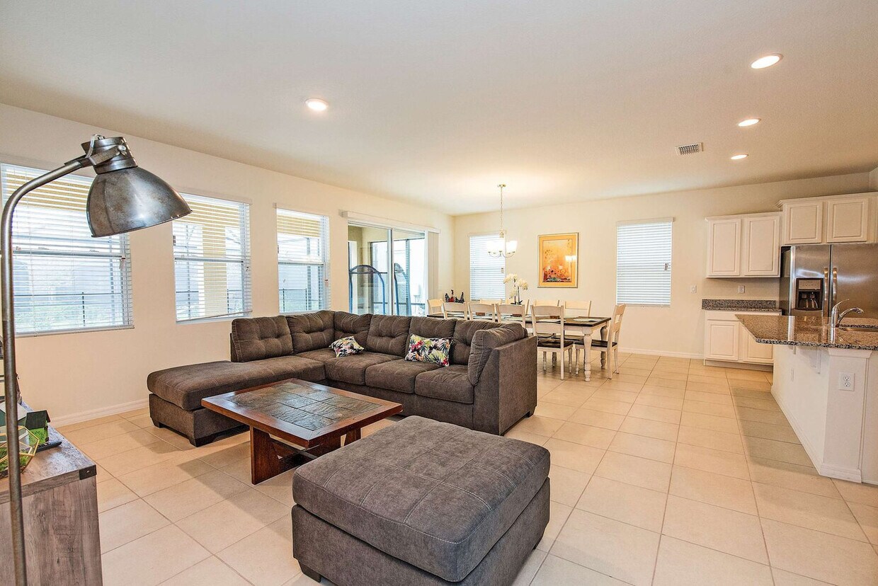 La tarifa anunciada de $2,064 al mes es la más baja disponible, basada en una estadía de 1 mes con fecha de entrada el 26 de abril de 2026. Las tarifas varían según la duración de la estadía, la temporada y otros parámetros. Para conocer el precio exacto y otros componentes, visite nuestro sitio web e ingrese las fechas de entrada y salida deseadas. La tarifa se aplica al facturar por adelantado; puede ser mayor si se factura en varios pagos. Siéntase como en casa en esta villa de 5 habitaciones ubicada en Solterra Resort en Davenport, a solo minutos de las atracciones de Orlando. Esta casa cómodamente amueblada cuenta con habitaciones temáticas para niños. Los interiores están decorados con buen gusto y brindan un ambiente acogedor con comodidades modernas. Disfrute de los acogedores espacios de estar, una cocina bien equipada y cómodas habitaciones. La villa cuenta con un comedor donde podrán disfrutar de comidas en compañía. El acceso al parque acuático Solterra, al río lento y a la gran piscina comunitaria está incluido. La piscina climatizada está disponible por $45 adicionales por noche con un mínimo de tres noches. Se admiten mascotas con un cargo de $150 por mascota por estadía y se aplican restricciones de peso. Hay estacionamiento gratuito disponible para 2 vehículos en los lugares designados frente a la casa. Solterra Resort tiene una ubicación ideal a solo minutos de las principales atracciones de Orlando, como Walt Disney World, Universal Studios, ESPN Wide World of Sports y Sea World. El resort también está cerca de supermercados, tiendas y un cine. Solterra es una comunidad privada con comodidades de resort, que cuenta con una casa club, piscina de resort con tobogán acuático, gimnasio, canchas de tenis y voleibol, un área de juegos infantiles y un área recreativa. El horario de silencio es de 10:00 p. m. a 7:00 a. m. Los huéspedes deben ser mayores de 25 años a menos que estén acompañados por un adulto responsable. No se permiten fiestas ni eventos. Solo los huéspedes registrados pueden pasar la noche; se debe enviar una lista antes del check-in. Los vehículos estacionados en violación de las reglas de estacionamiento pueden ser remolcados de inmediato. Las parrillas de carbón están estrictamente prohibidas debido a los riesgos de incendio; El uso de parrillas de carbón puede resultar en una multa de hasta $500 y el desalojo. Para estancias de 20 noches o más, se programará una limpieza a mitad de la estancia cada dos semanas. [SI]