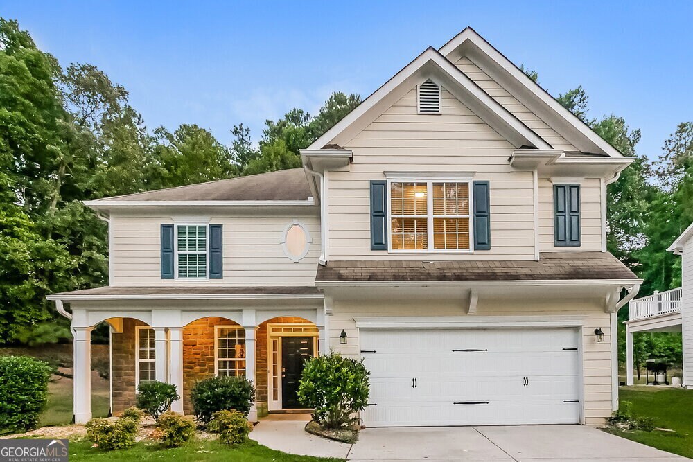 Los elegantes arcos segmentados le dan la bienvenida a la entrada principal de esta casa de alquiler en Newnan, GA. El refinamiento continúa en el resto de la residencia, incluido el comedor, donde una hermosa lámpara de araña se encuentra en el centro de un techo artesonado. Los revestimientos de madera nítidos recubren las paredes para darle el toque final. Una chimenea se encuentra en la esquina de la espaciosa sala de estar, lo que ofrece una sensación acogedora. Varias ventanas grandes dejan entrar la luz del sol desde múltiples ángulos. Un hermoso baño en suite lo espera en el dormitorio principal, donde encontrará un tocador con dos lavabos con mucho espacio de almacenamiento, una bañera, una ducha a ras de suelo y un vestidor.