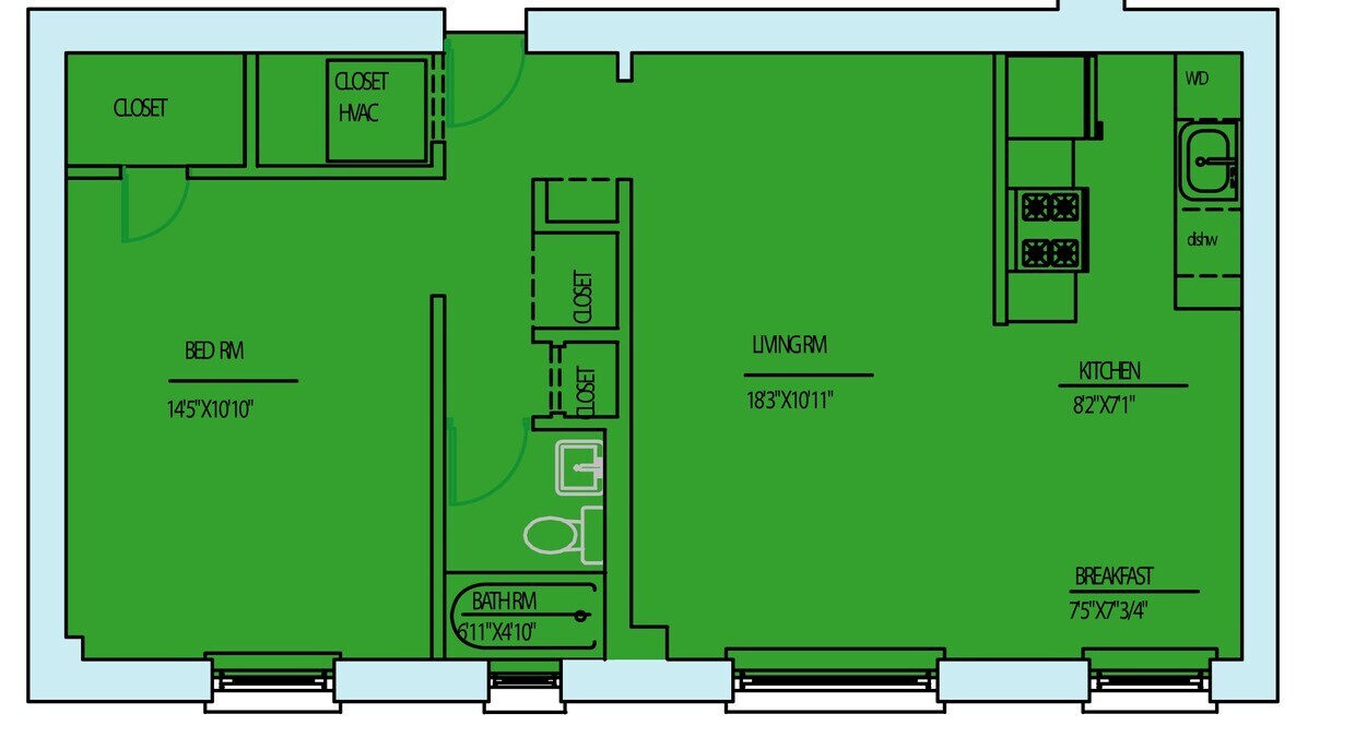 | 1 habitación 1 habitación 1 Hab | 1 baño 1 baño 1 Baño | 600 Pies² |