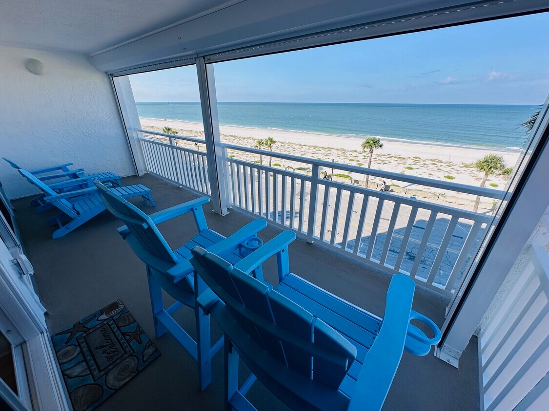 ¡Bienvenido a su santuario frente al mar en el corazón de Pass-a-Grille! Esta residencia de 2 dormitorios y 2 baños, bellamente remodelada, se encuentra en el quinto piso de 555 Gulf Way, justo frente a la costa de arena fina. La casa ofrece vistas panorámicas únicas que se extienden por Pass-a-Grille Beach, St. Pete Beach, Treasure Island y Egmont Key. Los atardeceres son su telón de fondo nocturno, la brisa del Golfo llena las habitaciones y el ritmo relajado de la vida isleña comienza desde el momento en que llega. En el interior, la unidad es luminosa, espaciosa y cuidadosamente renovada. La sala de estar y el comedor, de concepto abierto, enmarcan el Golfo y el horizonte, creando una vista impresionante desde la mañana hasta la noche. Un gran televisor de pantalla plana es perfecto para relajarse después de un día en la playa. La cocina completamente remodelada cuenta con elegantes electrodomésticos de acero inoxidable, amplio espacio de encimera y todo lo esencial para estancias largas. Una lavadora y secadora grandes se encuentran dentro de la unidad para su comodidad. Esta distribución de 2 dormitorios y 2 baños tiene capacidad para un máximo de 4 huéspedes, con una cama king en la suite principal y una cama queen en la habitación de invitados. Ambos dormitorios tienen vistas al Canal Intracostero, lo que le ofrece una auténtica visibilidad de mar a mar desde el amanecer hasta el atardecer. Ambos baños están completamente renovados con acabados modernos y duchas a ras de suelo que crean un ambiente tranquilo, inspirado en un spa. Salga al balcón privado para disfrutar de vistas panorámicas de 170 grados del Golfo. Observe los veleros pasar a la deriva por la tarde, disfrute de un café con la luz de la mañana o relájese al atardecer mientras el cielo se tiñe de un rosa algodón de azúcar. Las tumbonas Adirondack, los asientos altos y las mesas auxiliares hacen de este balcón una verdadera extensión del espacio habitable. Se proporcionan sillas de playa y equipo de playa. Hay aparcamiento reservado y aparcamiento para invitados disponible. El ascensor abre directamente a su puerta principal, y dos escaleras en los lados este y oeste ofrecen un rápido acceso a la playa o al pueblo. Incluye wifi y televisión por cable, junto con todos los servicios públicos. A solo dos cuadras de la playa al norte se encuentra el histórico distrito de Pass-a-Grille, con restaurantes frente al mar, bares en azoteas, tiendas locales, galerías y el emblemático muelle pesquero. Alquile un barco hacia la Reserva Shell Key, Egmont Key, Fort De Soto o diríjase al Golfo para disfrutar de una pesca de primera clase. Este es uno de los últimos pueblos playeros auténticamente de la Florida Antigua, donde la vida transcurre con más calma, el agua siempre brilla y las puestas de sol son inolvidables. Las tarifas mensuales/de temporada son las siguientes: 2026 Enero $8,000 Febrero $9,000 Marzo $10,000 Abril $8,000 Mayo $6,000 Junio $6,000 Julio $6,000 Agosto $5,000 Septiembre $5,000 Octubre Bloqueado para uso del propietario Noviembre Bloqueado para uso del propietario Diciembre $7,000 2027 Enero $9,000 Febrero $10,000 Marzo $10,000 Abril $9,000 Mayo $6,000 Junio $6,000 Julio $6,000 Agosto $5,000 Septiembre $5,000 Octubre Bloqueado para uso del propietario Noviembre Bloqueado para uso del propietario Diciembre $7,000 Información adicional: Todos los servicios públicos incluidos Tarifa de limpieza $200 Exención de daños $99 Capacidad para 4 personas Máximo Se requiere una estadía mínima de 30 días