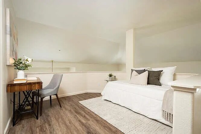 Spanning over 1320 square feet, this corner unit provides desirable contemporary living and convenient flexible space. The interior exudes warmth and sophistication, featuring vaulted ceilings that create an airy ambiance flooded with natural light, contributing to a unified feel and flow. The open kitchen includes a gas range, pantry, and an adjacent laundry room positioned for added convenience. A generously sized bedroom features an ensuite bathroom and spacious walk-in closet, while a versatile loft, suitable for an office or guest bedroom with a full bath, provides options to accommodate various needs. Step outside to entertain on the expansive outdoor deck while enjoying breathtaking sunset views. Residents can access amenities including a community pool, manicured grounds, and a serene park with bench seating overlooking a tranquil lagoon. Located between the bustling tech hub of Silicon Valley and the vibrant cityscape of San Francisco, with top-rated schools nearby, this Redwood Shores residence embodies ideal proximity and the quintessential California lifestyle.