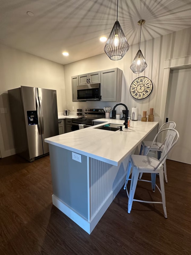 Hermoso apartamento de lujo, nuevo y amueblado, en el corazón del centro de Glens Falls, frente al edificio Market Center. Contrato de arrendamiento de 1 año. En el primer piso, encontrará encimeras de Corian, electrodomésticos nuevos de acero inoxidable, incluyendo lavavajillas, y un amplio baño. Conexión para lavadora/secadora. Incluye: cama, sofá, mesa de centro, mueble de TV, televisor, todos los utensilios de cocina y pequeños electrodomésticos. Todos los servicios incluidos: calefacción, aire acondicionado, electricidad, agua, recolección de basura y wifi de alta velocidad. Un lugar de estacionamiento privado, junto al edificio. Cerraduras digitales. El apartamento está ubicado encima de The Golden Monkey Lounge y Taco Kings Jalisco. Disponible amueblado. Se debe abonar un depósito de seguridad de un mes al firmar el contrato. El primer mes de alquiler vence 5 días antes de la mudanza. El alquiler vence el primer día del mes. Todos los servicios están incluidos.