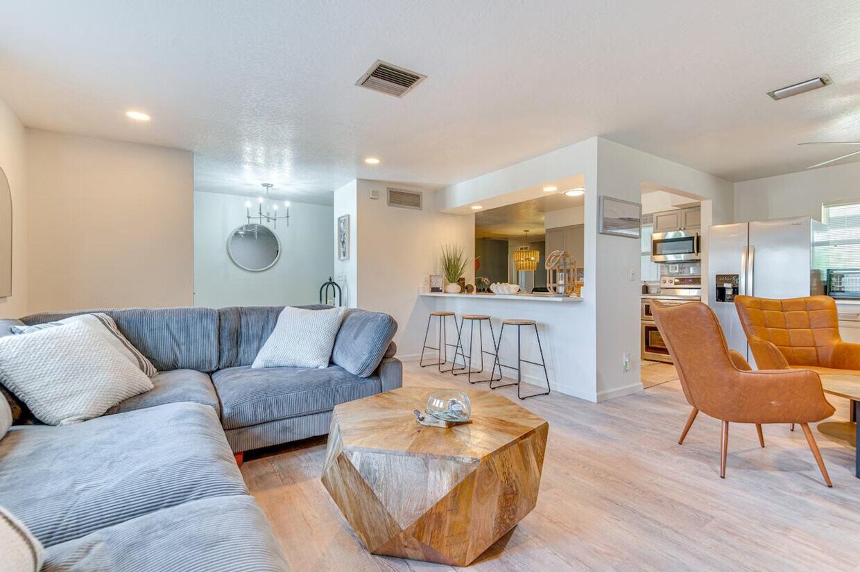 La tarifa anunciada de $6,314 al mes es el precio más bajo disponible, basado en una estadía de 30 días con fecha de mudanza el 18 de octubre de 2026. Las tarifas varían según la duración de la estadía, la temporada y otros parámetros. Para conocer el precio exacto y los componentes adicionales del precio, visite nuestro sitio web e ingrese las fechas de mudanza deseadas. La tarifa se aplica cuando se factura por adelantado; puede ser mayor si se factura en múltiples pagos. Siéntase como en casa en este alquiler vacacional recientemente remodelado en Satellite Beach, perfecto para una escapada a la costa o un viaje de negocios. Esta casa de una sola planta cuenta con 4 dormitorios y 2 baños y se ingresa con un solo escalón. Esta acogedora casa cuenta con televisores inteligentes, una mesa de comedor, un porche con mosquitero, una mesa para fogata y asientos al aire libre. La cocina está totalmente equipada con lavavajillas, refrigerador, estufa/horno, microondas, cafetera Keurig, horno tostador, tostadora, enfriador de bebidas, utensilios básicos de cocina, vajilla y cubiertos, especias, una trona, bolsas de basura y toallas de papel. Otras comodidades incluyen calefacción y aire acondicionado centrales, toallas y ropa de cama, artículos de aseo gratuitos, secador de pelo, lavadora y secadora, plancha y tabla de planchar, y entrada sin llave. Hay aparcamiento disponible en el garaje para 2 vehículos y en la entrada para 3 vehículos. También hay aparcamiento gratuito en la calle. Viva como un local en Satellite Beach, a poca distancia de restaurantes y cafeterías. Explore atracciones cercanas como el muelle de Cocoa Beach o disfrute de un baño al atardecer en la playa. No se permite fumar, ni se admiten mascotas, ni se permiten eventos, fiestas ni reuniones grandes. Según las normas de Florida, los huéspedes deben tener al menos 25 años para reservar. Esta propiedad cuenta con 3 cámaras de seguridad externas: una cámara de timbre Ring ubicada junto a la puerta principal, frente a la entrada principal; una cámara ubicada en la parte trasera de la casa, frente al patio trasero; y una cámara ubicada en la parte delantera de la casa, frente al patio delantero y al garaje. Las cámaras son exteriores y no miran hacia los espacios interiores. Las cámaras graban vídeo y sonido al activarse con el movimiento. [SI]