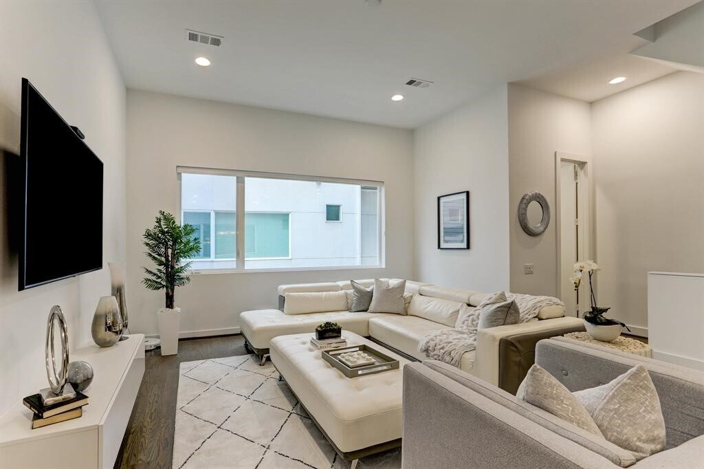 Bienvenido a esta hermosa casa de 3 dormitorios y 3,5 baños ubicada en la subdivisión de alta gama Uptown North. Ofrece un diseño moderno y elegante, está repleta de características inteligentes y hermosos pisos de roble real de 1,9 cm en toda la casa. En la primera planta se encuentra el dormitorio de invitados/espacio flexible/oficina, que cuenta con baño completo y vestidor. Además, se puede acceder a su propio espacio privado al aire libre. La segunda planta cuenta con una cocina de diseño moderno con una estufa de línea recta de 4 quemadores, vinoteca empotrada, electrodomésticos de acero inoxidable, gabinetes y cajones de cierre suave y encimeras de cuarzo. El concepto abierto de la sala de estar, que conecta la cocina con el comedor y la sala de estar, crea un espacio perfecto para disfrutar. El dormitorio principal se encuentra en la tercera planta y cuenta con un amplio vestidor, ducha con marco y bañera separada y tocador doble. La terraza privada en la azotea se encuentra en la cuarta planta, ¡una experiencia impresionante! Esta casa viene mejorada con altavoces integrados, termostatos Nest, persianas personalizadas e interruptores inteligentes. MLS# 74117899