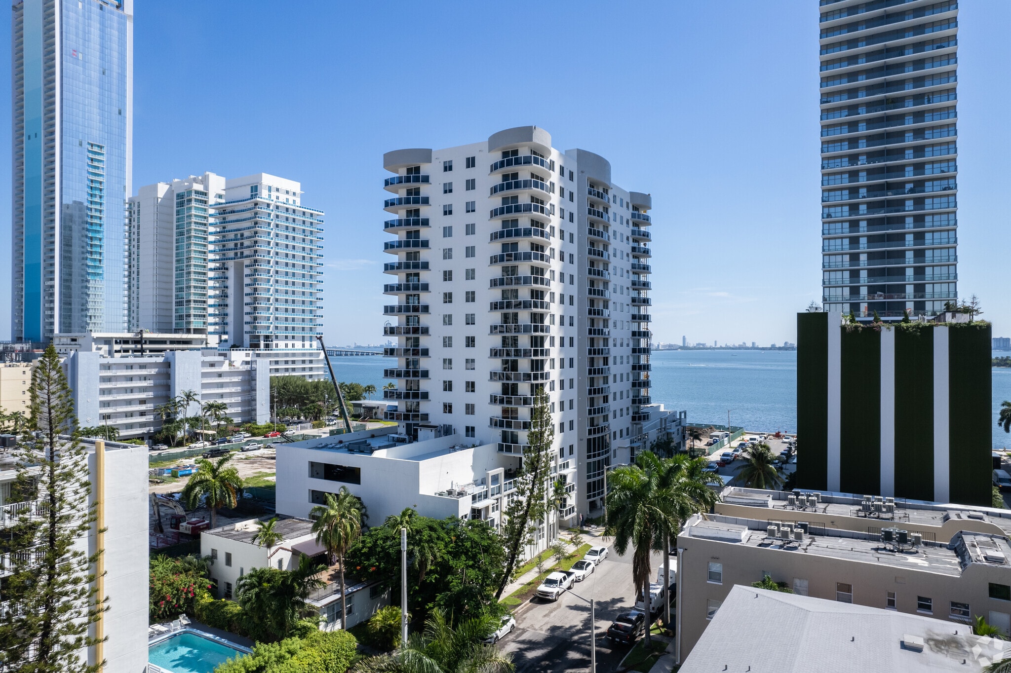 601 NE 23rd Street, also known as 23 Biscayne Bay, stands as an 18-story condominium in the heart of Miami's Edgewater neighborhood. Completed in 2013, this contemporary high-rise offers 96 units with views of Biscayne Bay and the city skyline. The building's curved facade and glass balconies create a distinctive silhouette against the Miami skyline, embodying the area's recent transformation into a luxury residential destination. Situated just steps from the waterfront, 23 Biscayne Bay combines the tranquility of bayside living with the energy of an up-and-coming urban neighborhood.