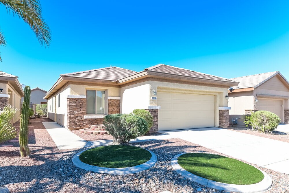 Tenga en cuenta que nuestras casas se asignan por orden de llegada y no se reservan hasta que todos los solicitantes firmen el contrato de arrendamiento y se hayan cobrado los depósitos de seguridad. Esta casa cuenta con Progress Smart Home, la aplicación inteligente para el hogar de Progress Residential, que le permite controlar la casa de forma segura desde cualquier dispositivo. Obtenga más información en Alquile esta casa antes del 31 de julio de 2025 y reciba $500. ¿Desea visitarla por su cuenta? Haga clic en el botón "Autovisita" en el anuncio de esta casa o llame para registrarse para una visita autoguiada en el horario que mejor le convenga. Esta encantadora casa de alquiler de tres dormitorios y dos baños se encuentra en una hermosa comunidad para mayores de 55 años en Las Vegas, Nevada. Venga a ver esta casa de alquiler renovada de tres dormitorios y dos baños en Las Vegas, NV. Con garaje para dos autos y patio trasero cubierto, esta propiedad de una sola planta tiene un diseño abierto con pisos de baldosas en la sala de estar. Un ventilador de techo y grandes ventanales facilitan la circulación del aire, mientras que las puertas corredizas de vidrio ofrecen abundante luz natural. La cocina incluye electrodomésticos de acero inoxidable, encimeras de cuarzo y un práctico fregadero doble. Encontrará espacio de almacenamiento adicional en la despensa. En la suite principal, le encantará cómo el suelo de tablones con aspecto de madera y las paredes en gris claro crean un ambiente contemporáneo. Unas puertas dobles conducen al baño contiguo, donde encontrará un vestidor y un amplio tocador con dos lavabos.