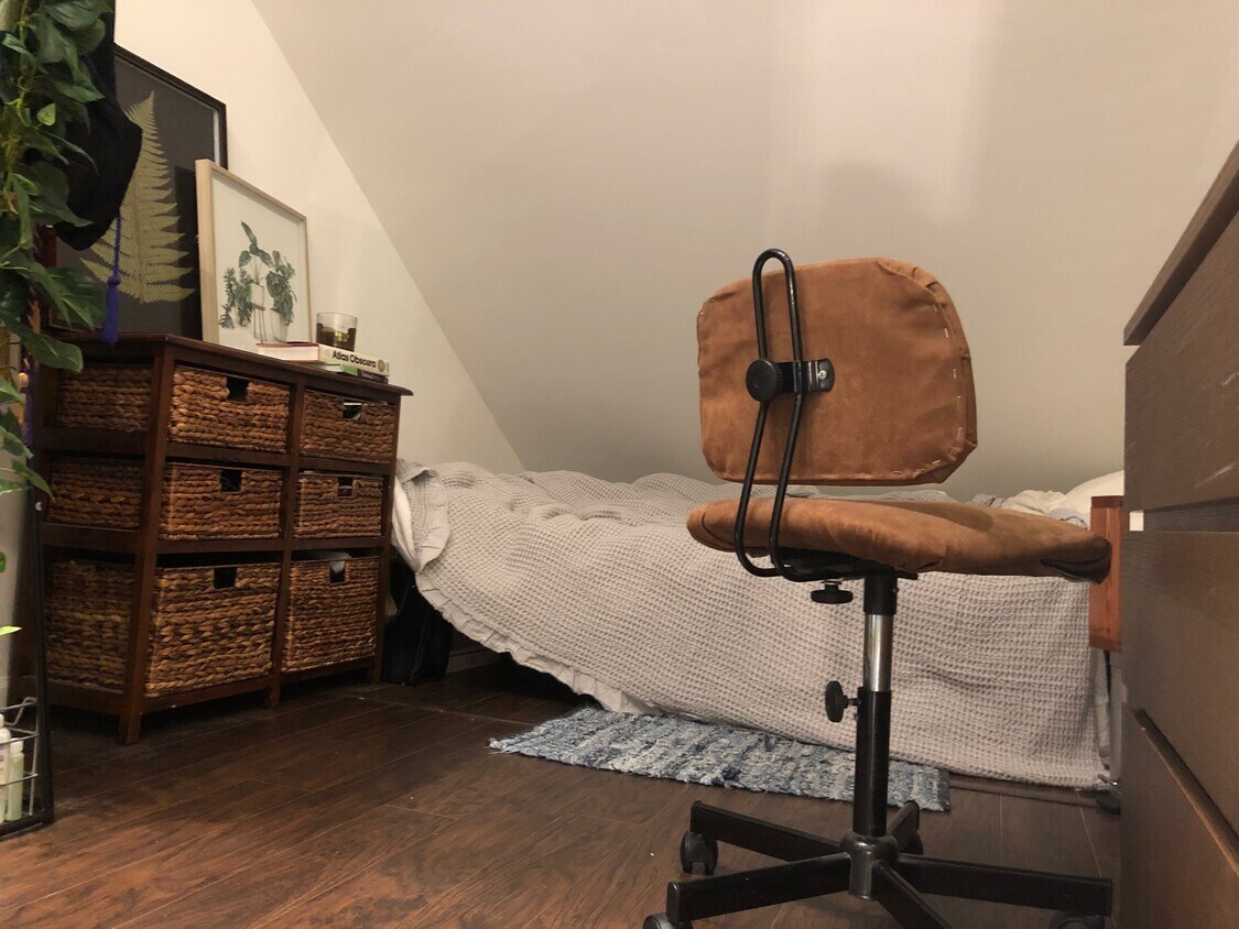 Loft disponible en casa adosada compartida, totalmente cubierto, pero no cerrado. Excelente espacio privado en una hermosa casa adosada con profesionales atentos, tranquilos y trabajadores. Excelente oportunidad para quienes tienen poco espacio y solo necesitan un lugar limpio y seguro para dormir. El acogedor loft está amueblado con una cama matrimonial convertible en sofá, una pequeña cómoda, un escritorio y una silla.