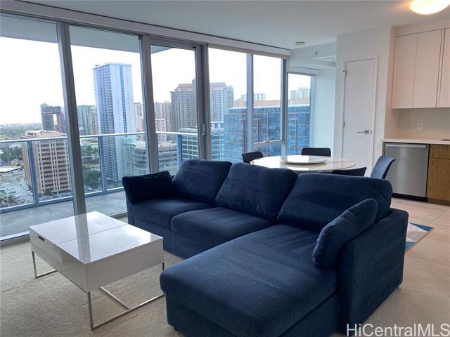 Apartamento amueblado disponible de 2 dormitorios y 2 baños en el piso 25 del condominio AZURE ALA MOANA con solo 1 puesto de estacionamiento seguro asignado. ** Citas solo por correo electrónico. NO SE ACEPTAN LLAMADAS TELEFÓNICAS. Para consultas, envíe un correo electrónico a 'rental(at)hawaiianjoy (dot) com'. Solo de lunes a viernes. ** Contrato de arrendamiento inicial a partir de los 6 meses y mes a mes después. Ubicación conveniente en Ala Moana. Cerca de Ala Moana Center, Walmart, restaurantes y tiendas. El contrato de arrendamiento a largo plazo comienza a los 6 meses y mes a mes después. Esta unidad incluye cocina completa con electrodomésticos Bosch de acero inoxidable, sofá, 2 camas (1 king y 1 matrimonial), aire acondicionado split en cada habitación, lavadora/secadora completa, ventiladores de techo en cada habitación, ducha/bañera en ambos baños, ventanas de piso a techo, pisos alfombrados, persianas y un lanai. Los muebles deben permanecer en la unidad. Los servicios públicos incluyen: agua/alcantarillado, televisión por cable básica e internet. El inquilino es responsable de la electricidad. Las comodidades del edificio incluyen: seguridad 24/7, piscina, spa, gimnasio, cine y áreas de barbacoa. No se admiten mascotas, no se permite fumar ni subarrendar. Se requiere seguro de inquilinos al mudarse.