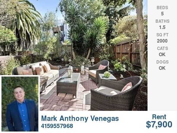 Múdate listo ahora 5.28.2020 Cole Valley/Vecindario Ashbury Heights! * Recorridos de comenzar disponibles ahora el 28 de mayo, 2020. * Lea y acepte anuncio términos y condiciones incluidos en el cargo total de la mudanza pagados por la empresa o de los inquilinos antes de texto Mark Venegas en 415.955.7968 con Coldwell Banker Global Luxury para una muestra privada. * Estamos haciendo en FaceTime Tours y proyecciones en vivo. Para vivir una persona deberá usar una máscara, usan distanciar a las sociales y firmar un formulario de entrada COVID 19 de ingresar a la propiedad. Gracias por adelantado por siguientes las normas anteriores. * Enormes estilo victoriano de 5 habitaciones, con 2 salas de estar y 2 chimeneas. Pisos de madera noble en toda la propiedad. Persianas de madera de California en ventanas. High Victorian de altura con molduras de techo. Flamantes encimeras de granito en la cocina con lavaplatos Bosch. Nueva pintura. Hermosos y Bright Último piso. Patio trasero con paisajes con muebles al aire libre para recibir invitados. Lavadora & secadora dentro de la unidad. Espacios de almacenaje en garaje. Estacionamiento disponible por un adicional de. A una caminata de distancia de Whole Foods y transporte público. * CARACTERÍSTICAS - Gran cantidad de espacios de almacenaje en garaje. - Lavadora & secadora en el apartamento. - Persianas de ventanas de California. - Sunny Último piso con techos altos. - Pisos de madera noble en todo the flat. - Encimeras de la cocina con lavaplatos Bosch. - Patio trasero con paisajes con muebles al aire libre para recibir invitados. - 5 habitaciones o 4 habitaciones con 2 salas de estar y 2 chimeneas. * UBICACIÓN - Cerca de bosque Sutro para caminatas y ciclismo de montaña - 5 min. A pie de Whole Foods, farmacia y ferretería - 5 minutos a pie a Tank Hill (una de las mejores vistas de toda la ciudad) - Excelentes opciones de transporte - 5 min. A N, una gran cantidad de autobuses, fácil ubers - Grandes restaurantes & cafés - Zazie Padrecito, Reverie, la Boulangerie - Cerca de Grattan Parque con área de juegos infantiles, cancha de tenis, cancha de fútbol, y canchas de básquetbol - 5 minutos a pie a Golden Gate Park (De Young, la Academia de Ciencias, Botanical Gardens, Jardín de té japonés, Invernadero de flores) * VECINDARIO Cole Valley es uno de los mejores vecindarios de la ciudad de ft². Geographically en el centro de que parece un pequeño pueblo en el medio de una ciudad bulliciosa. Extremadamente cómodos, con excelentes supermercados (Luke's locales, Whole Foods), ferretería, 2 farmacias, 3 cafeterías, de varios excelentes restaurantes como Zazie (conocido por uno de los mejores brunches en ft²) y Padrecito, 2 bares (Finnegan's Wake - bloody mary calificado como el n.º 1 en ft²), tienda de queso, varios excelentes cafeterías, y un gimnasio. Fácil acceso a Tank Hill - mejores vistas de la ciudad. A pocas cuadras de Sutro bosque, que cuenta con millas de impresionantes caminatas y de ciclismo de montaña. * PLAZO - 1 año de contrato de arrendamiento mínimo - Se consideran - Estacionamiento disponible por un cargo adicional - el propietario paga el agua y recolección de residuos. El inquilino paga los servicios de gas, electricidad, televisión por cable y Wi-Fi * EN LOS COSTOS DE MUDANZA 1. Primer mes de alquiler 2. 2 meses Depósito de seguridad 3. Agente inmobiliario de cargo equivalente al 50 % del primer mes de alquiler (pagado por inquilino o de la compañía) TOTAL en los costos de mudanza: $27.650,00 * Gracias y bienvenido a San Francisco. * Todas las mejores! Mark Anthony Venegas Coldwell Banker Global Luxury Vendedor CA, BREn.º 01858283 Agente inmobiliario, CA BREn.º 01866771 El propietario en alquiler, Full Real Estate Services para Compradores, Entre los vendedores, compradores de inversión de alquiler y el edificios en venta en San Francisco Maestría en Administración de Recursos Humanos 415.955.7968 y de texto 1560 Van Ness Ave Fl 2, San Francisco, CA, 94109 vivir tu mejor vida en apartamentos de San Francisco, IN www.liveyourbestlifeinsanfrancisco.com