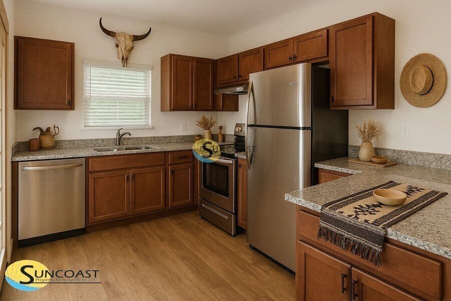 Este imperdible apartamento de 2 dormitorios y 2 baños ofrece acabados modernos, una distribución funcional y un estilo de vida sencillo en un entorno muy codiciado. Diseñada para la comodidad y conveniencia, esta casa está lista para mudarse y es ideal para inquilinos que buscan calidad y valor. Ingrese a un luminoso plano de planta abierto con pisos de tablones de vinilo de lujo con apariencia de madera, creando un espacio limpio y contemporáneo. La cocina, bien equipada, incluye encimeras de granito, barra de desayuno, electrodomésticos de acero inoxidable y amplio espacio de almacenamiento, perfecto para el día a día y el entretenimiento. Ambos dormitorios son amplios y tienen cómodo acceso a baños completos. La casa también incluye conexiones para lavadora y secadora para mayor comodidad. El cuidado del césped está incluido en el alquiler, lo que permite una vida fácil y sin preocupaciones, sin necesidad de mantenimiento exterior. Convenientemente ubicada cerca de tiendas, restaurantes y carreteras principales, esta propiedad ofrece fácil acceso a todo lo que necesita. Características principales: 2 dormitorios, 2 baños, diseño de concepto abierto, pisos de tablones de vinilo de lujo, encimeras de granito, barra de desayuno, electrodomésticos de acero inoxidable, conexiones para lavadora y secadora, cuidado del césped incluido. Programe una visita y solicite en línea hoy mismo. Las casas con este diseño, condición y cuidado del césped incluido no duran mucho. El programa "Elija cómo pagar" de Suncoast = mayor flexibilidad. Los altos costos iniciales no deberían impedirle encontrar la casa adecuada. Es por eso que ofrecemos dos opciones simples: 1. Pague el depósito de seguridad completo tradicional al mudarse, o 2. Elija nuestro Plan de Depósito de Seguridad Flexible, que le permite distribuir sus pagos manteniendo la misma cobertura. Este programa ayuda a reducir los costos de mudanza sin sacrificar la tranquilidad. ¡Las fotos son solo para fines ilustrativos y algunos detalles pueden variar! Todos los residentes de SunCoast Property Management están inscritos en el Paquete de Beneficios para Residentes (RBP) por $75.00 al mes, que incluye seguro de responsabilidad civil, desarrollo de crédito para ayudar a mejorar la calificación crediticia de los residentes con pagos de alquiler puntuales, protección contra robo de identidad de hasta $1 millón, entrega de filtros de aire HVAC (para propiedades aplicables), servicio de conserjería para la mudanza, lo que facilita la conexión de servicios públicos y la configuración del servicio a domicilio durante su mudanza, control de plagas a pedido y mucho más. El RBP tiene un costo adicional y no está incluido en la tarifa de alquiler mensual anunciada. Más detalles al solicitar. CUIDADO con posibles fraudes. Si sospecha que alguna de nuestras propiedades está anunciada fraudulentamente, envíe un correo electrónico a: Suncoast Property Management NO solicita a ninguno de nuestros posibles residentes que transfiera fondos. Nuestra oficina principal se encuentra en Jacksonville, Florida, y puede visitar nuestro sitio web para verificar cualquier anuncio de alquiler. Cargo administrativo del contrato de arrendamiento. Al firmar este contrato de arrendamiento, el inquilino pagará al propietario un cargo administrativo no reembolsable de $200.00. Pago en línea. Se admiten mascotas. Conexiones para lavadora/secadora.