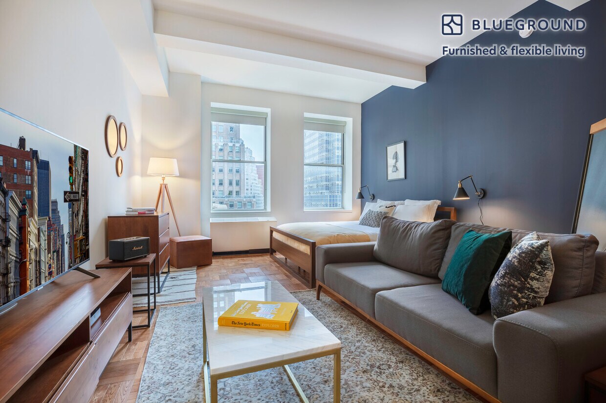 Descubra lo mejor de Nueva York con este estudio en el Distrito Financiero, con vistas a la ciudad desde un piso alto. Será fácil llegar y empezar a vivir en este apartamento amueblado, con cocina totalmente equipada, sala de estar y nuestro dedicado servicio de atención al cliente. (ID #NYC271) La tarifa anunciada de $4,910/mes es el precio más bajo disponible, basado en una estancia de 2 meses y 15 días con fecha de entrada el 4 de marzo de 2026. Si busca una estancia de 1 año, la tarifa es de $5,070/mes. Las tarifas varían según la duración de la estancia, la temporada y otros parámetros. Para conocer el precio exacto y otros componentes, visite nuestro sitio web e indique las fechas de entrada y salida deseadas. La tarifa se aplica al pagar por adelantado; puede ser mayor si se factura en varios pagos. Los agentes inmobiliarios pueden contactarle. ¿Buscaba un contrato de arrendamiento sin amueblar? Pruebe Blueground y actualice de una vivienda sin amueblar a una amueblada: - Amueblado a precios comparables a sin amueblar - Sin costos de instalación ni muebles: ahorre miles - Listo para mudarse: ahorre tiempo, solo traiga su maleta Diseñado pensando en usted Hermosos muebles, cocina totalmente equipada, Smart TV y un altavoz inalámbrico premium son solo algunas de las comodidades que encontrará dentro de este apartamento tipo estudio. Con una ubicación ideal en Nueva York, también encontrará mucho para amar en el exterior. Cuando esté listo para relajarse, le alegrará descubrir que todas las habitaciones de Blueground vienen con colchones de calidad superior, sábanas completamente surtidas y toallas acogedoras. Nos encargamos de todo para que simplemente pueda presentarse y comenzar a vivir. Arreglos para dormir Cama King, 70.8in/180cm Servicios Los servicios del edificio exclusivos de este apartamento tipo estudio incluyen: - Portero - Secadora en el edificio - Ascensor - Sala de juegos - Lavadora en el edificio - Salón - Biblioteca - Sala multimedia - Se admiten mascotas - Sala de juegos - Barbacoa en la azotea Asistencia de llegada y continua ¡Todo el apartamento es tuyo para disfrutar! Durante su estancia, tendrá acceso a nuestro equipo de Experiencia del Cliente a través de la aplicación Blueground. Puede programar limpiezas adicionales, enviar solicitudes de mantenimiento y ver nuestras recomendaciones de vecindarios con solo unos toques. Compartiremos todos los detalles al confirmar su estancia. Ubicación ideal: Este apartamento amueblado se encuentra en el Distrito Financiero, también conocido como FiDi. Hogar de Wall Street, One World Trade Center, South Street Seaport y Bowling Green, es un centro de actividad constante. Durante la semana, la acera siempre está llena de gente y los restaurantes están llenos de profesionales. Los deslumbrantes rascacielos y los lugares emblemáticos hacen de este uno de los barrios más reconocibles e históricos de la ciudad. En metro, Times Square está a unos 20 minutos. Otros aspectos a tener en cuenta: Los servicios del edificio pueden tener un coste adicional. Este apartamento de Blueground tiene opciones de alquiler flexibles, lo que le permite reservarlo por un mes, un año o más. Se admiten mascotas, aunque se aplican límites de peso y restricciones de raza y pueden incurrir en cargos. Brokes CYOF. Nos enorgullece garantizar que cada foto mostrada se tome en nuestras propias unidades con nuestros muebles reales. Dicho esto, renovamos periódicamente nuestra decoración y la disposición de los muebles, que pueden diferir de lo que se muestra en la imagen. [SI]