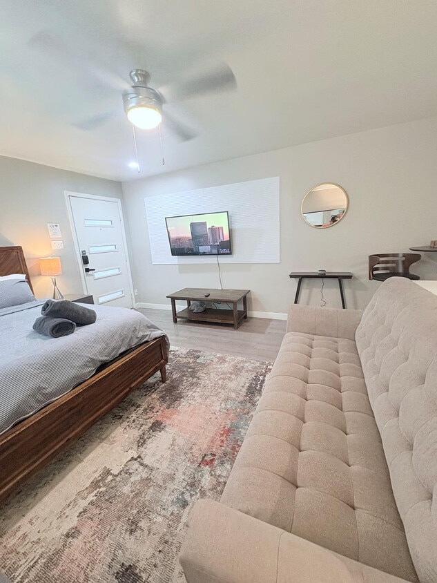 La tarifa anunciada de $3,626 al mes es la más baja disponible, basada en una estadía de 30 días con fecha de entrada el 3 de agosto de 2026. Las tarifas varían según la duración de la estadía, la temporada y otros parámetros. Para conocer el precio exacto y otros componentes, visite nuestro sitio web e ingrese las fechas de entrada y salida deseadas. La tarifa se aplica al pagar por adelantado; puede ser mayor si se factura en varios pagos. Disfrute de la tranquilidad de Austin en este elegante estudio de diseño cuidadoso, ubicado en el corazón del codiciado vecindario de Allandale. Ya sea que viaje solo por trabajo o para una acogedora escapada en pareja, este "Petite Retreat" le ofrece todo lo necesario para sentirse como en casa y disfrutar de una estadía cómoda. Este estudio está diseñado para ser un remanso de paz. Cuenta con un diseño abierto que maximiza el espacio y la luz. La cocina está equipada con todo lo esencial para comenzar el día, incluyendo mininevera, microondas, cafetera Keurig, prensa francesa, tostadora y hervidor eléctrico. El baño, limpio y moderno, está equipado con toallas limpias, champú, acondicionador y gel de ducha. Hay aparcamiento gratuito disponible. Allandale es muy apreciado por los lugareños por su carácter de mediados de siglo y su ambiente acogedor y peatonal. Este apartamento se encuentra justo al lado de Burnet Road, un paraíso gastronómico. Camine hasta Taco Flats para disfrutar de tacos, Barley Swine para una cena elegante o Top Notch Hamburgers para una hamburguesa. Empiece el día en Monkey Nest o Epoch Coffee. Explore hallazgos únicos en Room Service Vintage o compre lo esencial en el cercano HEB. Northwest District Park, que ofrece excelentes senderos para caminar y una piscina, está cerca. Este apartamento tiene una ubicación céntrica con fácil acceso a Mopac (Loop 1) y la autopista 183. El centro de Austin está a aproximadamente 15 minutos, The Domain a aproximadamente 10 minutos, el campus/estadio de UT a aproximadamente 12 minutos y el aeropuerto de Austin (AUS) a aproximadamente 20-25 minutos. El autobús rápido n.° 803 sale de Burnet Road y va directamente a The Domain (Norte) y al centro/South Congress (Sur). Uber y Lyft están disponibles y suelen llegar en 5 minutos. Está estrictamente prohibido fumar en la unidad, incluyendo cigarrillos, cigarrillos electrónicos, puros, marihuana medicinal y cualquier sustancia ilegal. Se aplicará una multa de $500 por cualquier infracción relacionada con fumar. Incluye un espacio de trabajo exclusivo con wifi de alta velocidad, ideal para teletrabajar, además de una acogedora sala de estar para relajarse con un Smart TV. [SI]