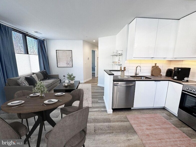 Moderno y luminoso condominio en el centro de Silver Spring, ¡listo para ocupación inmediata! Esta unidad ha sido bien mantenida y cuenta con todo lo necesario para disfrutar de un estilo de vida urbano. La entrada principal ofrece una zona de separación con el resto de la unidad, con espacio para un banco y un perchero. Su diseño abierto ofrece flexibilidad, y con ventanas a ambos lados, la luz es abundante durante todo el año. El dormitorio cuenta con una plataforma de almacenamiento tamaño queen y cabecera, ¡así que solo trae tu colchón! El baño está totalmente renovado y es de proporciones generosas. ¡También se incluyen elegantes cortinas, incluyendo persianas de arriba a abajo y de abajo a arriba! Se admiten gatos o perros pequeños, con un depósito adicional. ¡Solicite hoy mismo para consideración inmediata! Si bien se trata de una unidad en el primer piso, verá que la unidad está alejada de la calle y el dormitorio está muy por encima del nivel del suelo.