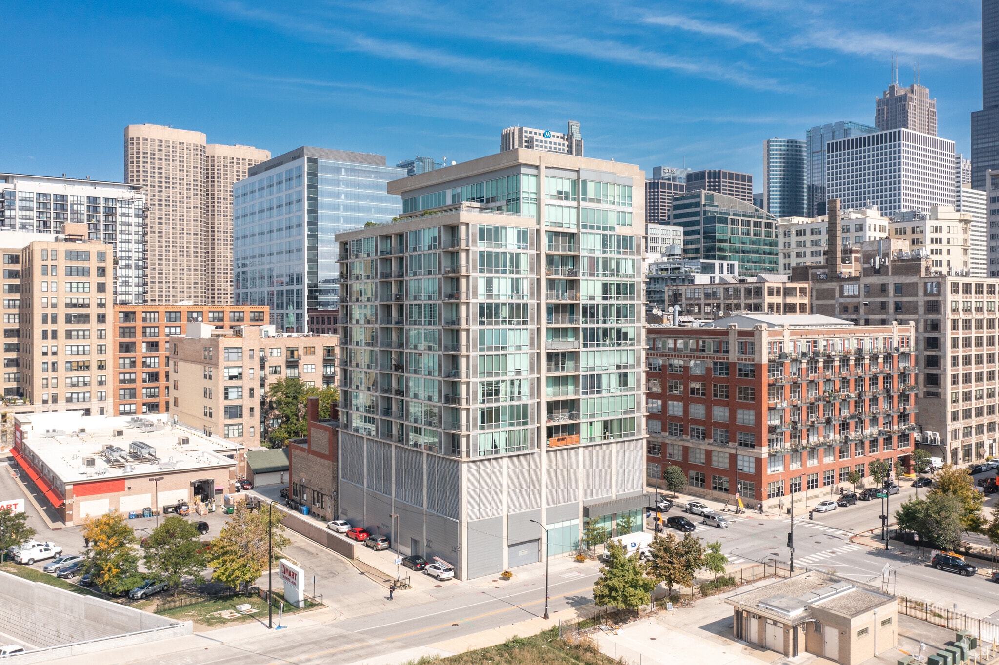 Platinum Tower, designed by the renowned architectural firm Brininstool & Lynch, stands as a modern high-rise in the vibrant West Loop neighborhood of Chicago. Completed in 1999, this 15-story building features a striking glass facade with a rounded corner design that softens its urban presence. Home to 97 condominium units, Platinum Tower offers residents a contemporary living experience in one of the city's most dynamic areas.