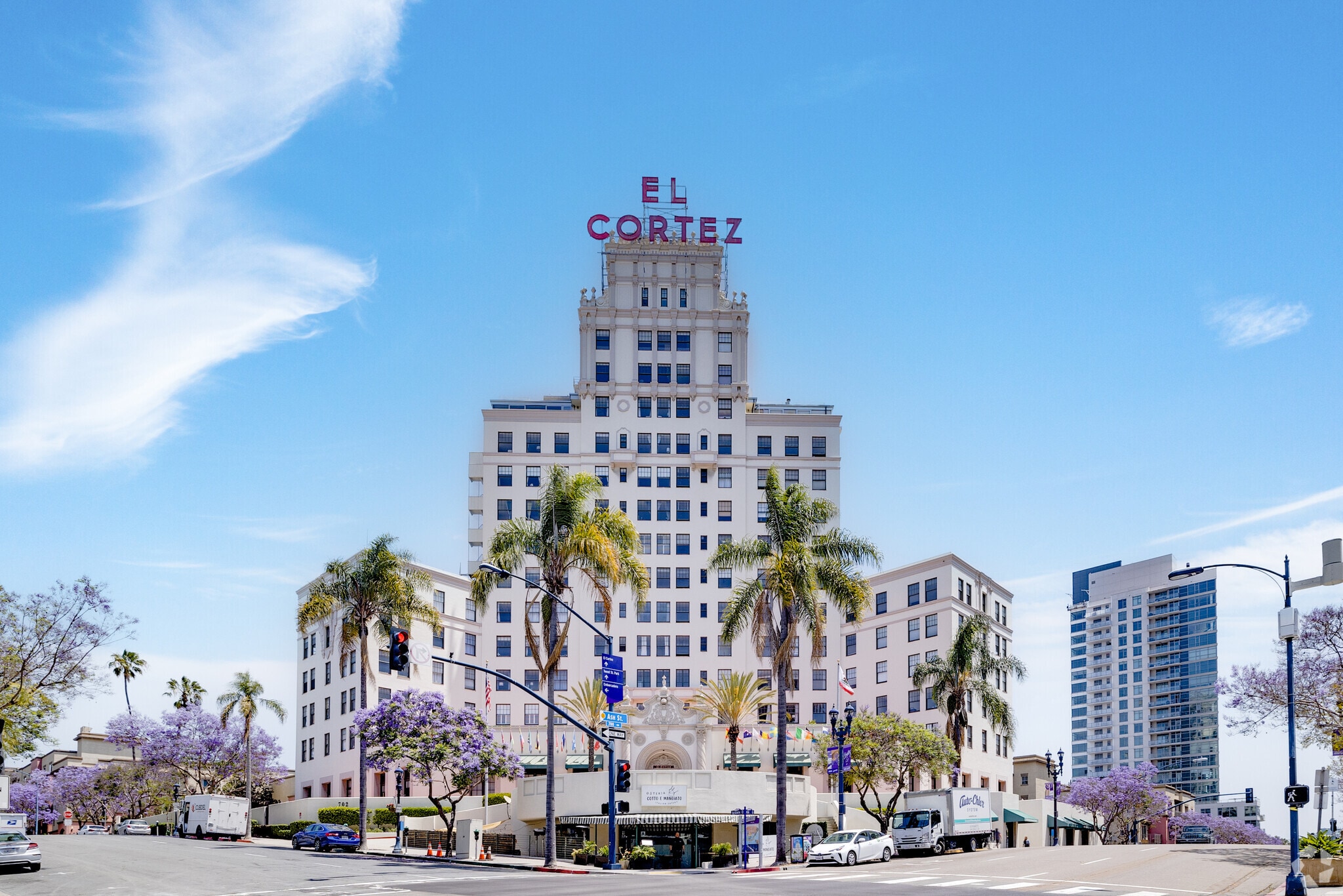 El Cortez, a 16-story condominium building, stands as a prominent fixture in San Diego's Cortez Hill neighborhood. Completed in 1927, this architectural gem was designed in the Spanish Renaissance style, featuring ornate entryways, decorative moldings, and terracotta roof elements. With 85 units, El Cortez offers a blend of historic charm and modern living, making it a unique residential option in the heart of the city.