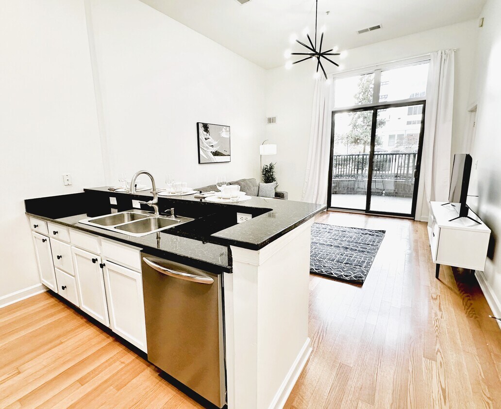 Moderno apartamento de 1 dormitorio, completamente amueblado, en la primera planta, con balcón privado con vistas a la piscina. Este diseño abierto ofrece techos altos y una decoración contemporánea, con elegantes muebles en todas partes. El apartamento incluye una cocina renovada y un baño remodelado. El espacioso dormitorio cuenta con un acogedor estudio esquinero, una cama king size, mientras que la sala de estar ofrece un cómodo sofá cama queen size y un televisor nuevo. Ubicado a pocos pasos del Estadio Bank of America, el apartamento se encuentra a poca distancia a pie de los vibrantes restaurantes de Uptown, el Museo, la Ópera y el Cine, la Universidad Johnson & Wales, el Edificio Corporativo de Bank of America, la biblioteca y Starbucks. Disfrute de una comodidad excepcional con la parada del tren ligero justo enfrente y el Aeropuerto Internacional Charlotte Douglas a solo 15 minutos en coche. Solicite hoy mismo una visita a la propiedad.