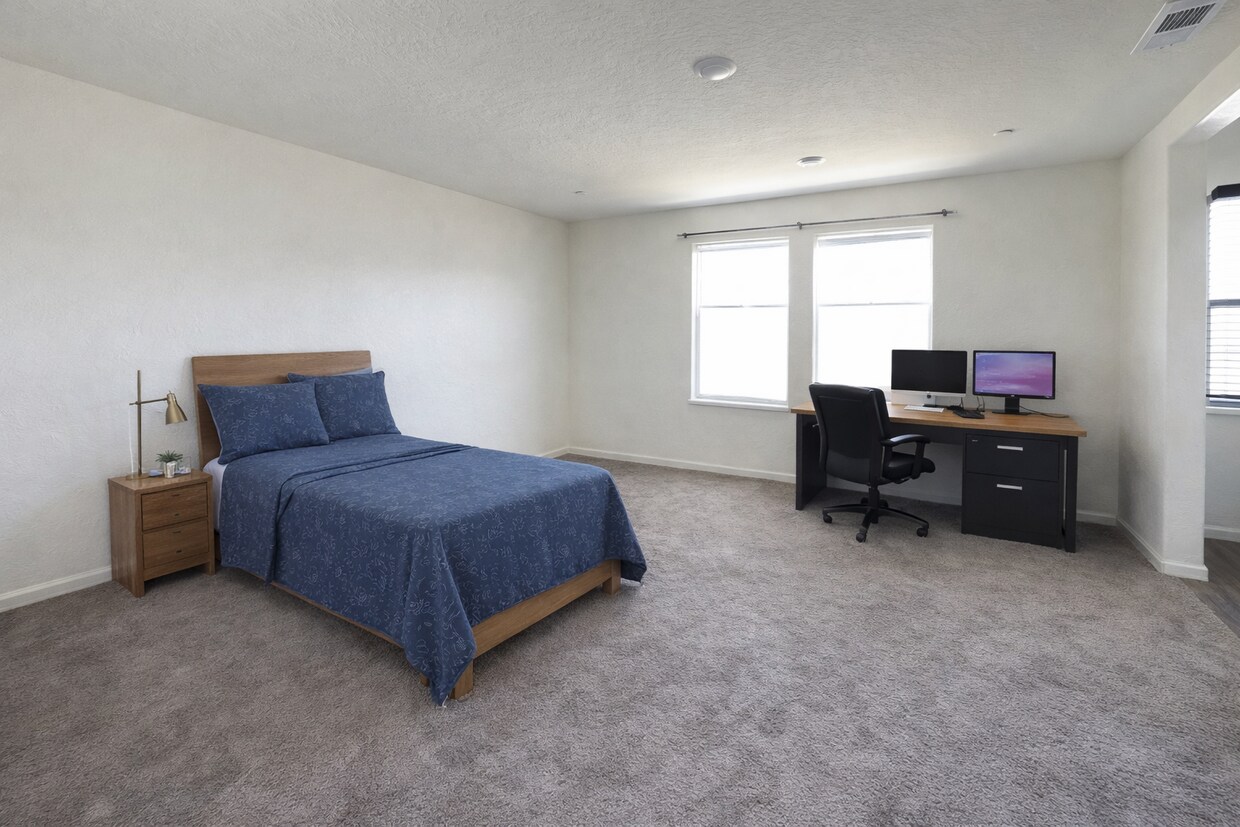 Se ofrecen habitaciones privadas amuebladas en una casa inteligente de reciente construcción con 4 habitaciones y 2.5 baños, ubicada en un vecindario tranquilo y seguro. Esta casa es perfecta para profesionales o estudiantes de posgrado que buscan un espacio de vida moderno y tranquilo con internet de fibra óptica de alta velocidad confiable, espacios de trabajo funcionales y áreas comunes cómodas. Precios y disponibilidad de las habitaciones: Habitación principal: $950/mes (baño privado) Habitaciones 2–4: $725/mes cada una. Características de la casa: Cada habitación está amueblada con una cama, escritorio, archivador, armario, iluminación empotrada y múltiples enchufes. Los espacios comunes incluyen una cocina totalmente equipada con encimeras de cuarzo y electrodomésticos de acero inoxidable, una amplia sala de estar/familiar con TV y asientos, y un patio trasero completamente cercado con jardín delantero ajardinado. La casa cuenta con un sistema de hogar inteligente, aire acondicionado central, energía solar para reducir los costos de electricidad, estacionamiento cubierto en garaje y amplio estacionamiento en la calle. Servicios y reglas: Los inquilinos comparten el servicio de electricidad, agua y recolección de basura. No se permite fumar, vapear ni tener mascotas. La casa es administrada por el propietario para una comunicación y atención rápidas. Se requieren verificaciones de antecedentes y de crédito para todos los solicitantes.
